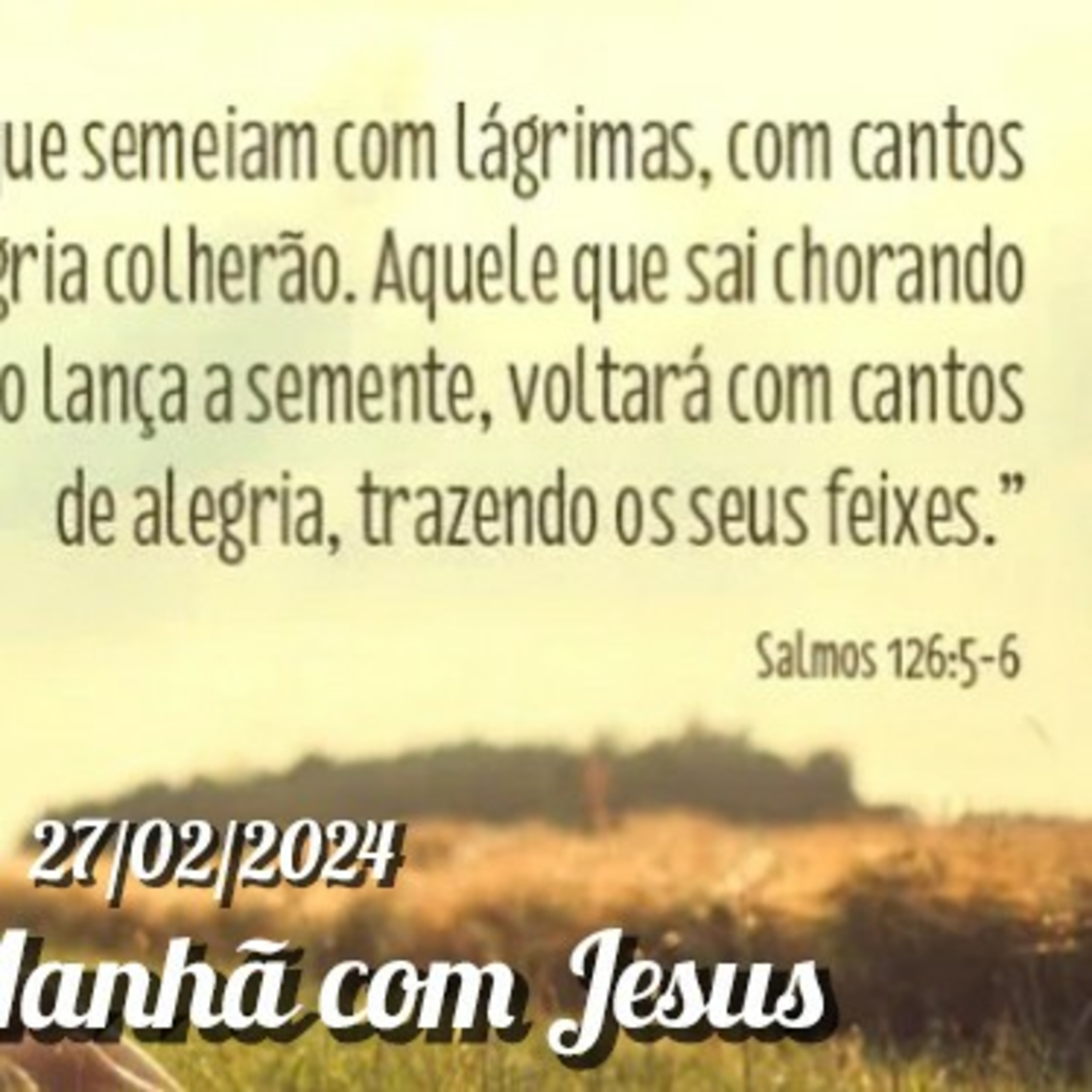 Aqueles que semeiam com lágrimas, com cantos de alegria colherão. Aquele que sai chorando enquanto lança a semente, voltará com cantos de alegria trazendo seus feixes.