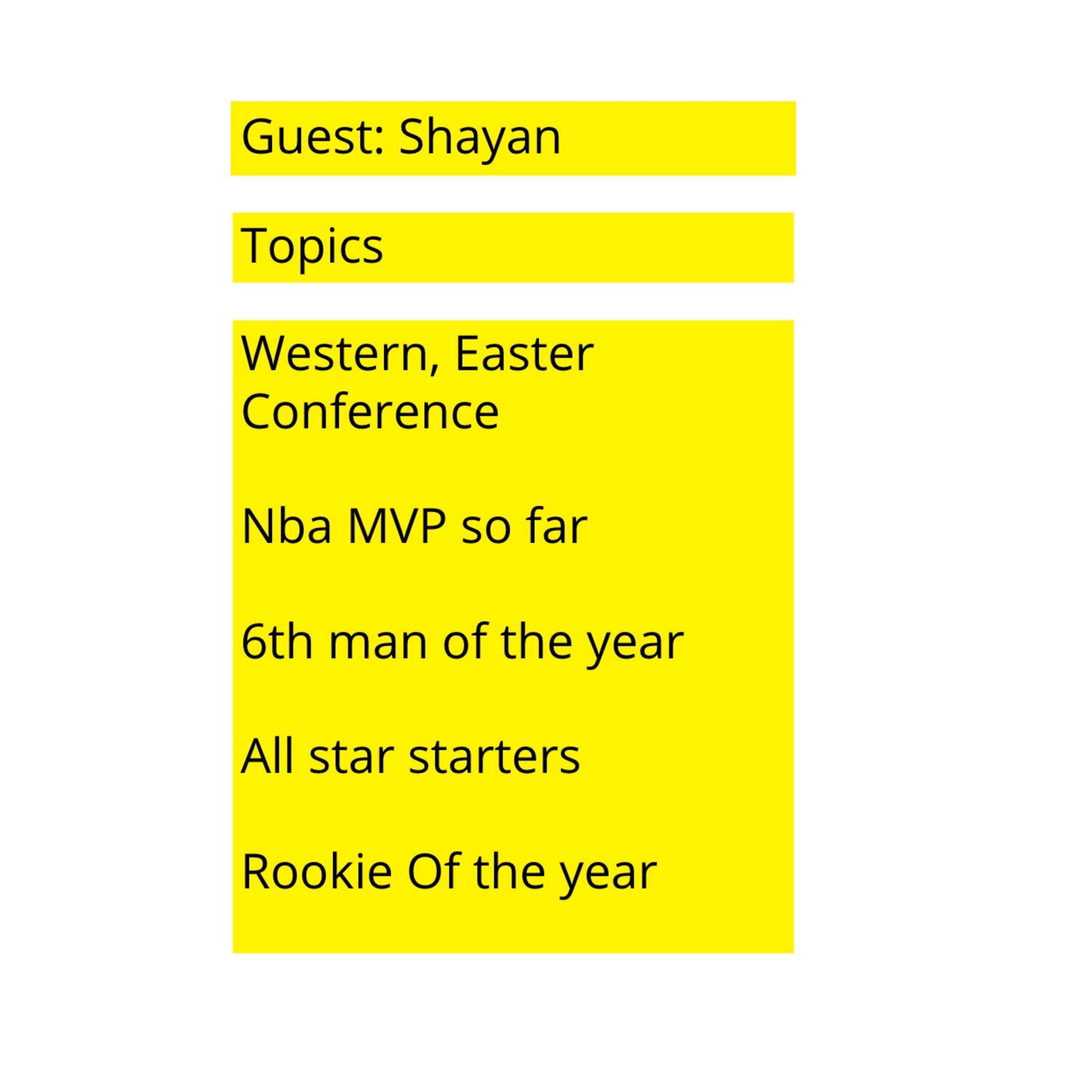 New guest on the show Shayan and we discuss all things NBA happening from the season so far we talk about the top teams, MVP, 6th man, and rookie of the year.