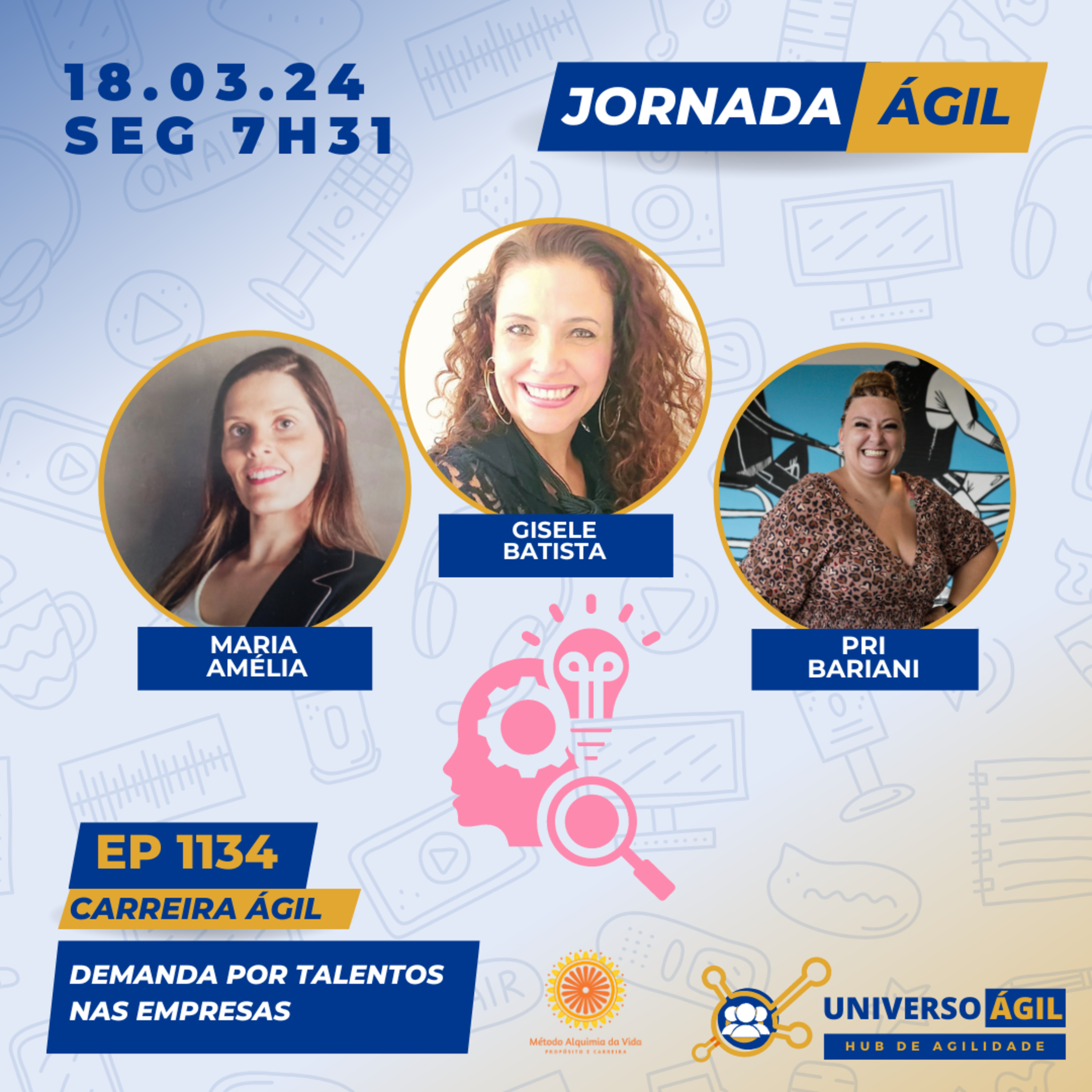 🚀 O quadro #CarreiraÁgil desta segunda-feira 18.03.24 7h31 (horário Brasília) no programa #JornadaÁgil traz Gisele Victor Batista @giselevictorbatista, @metodoalquimiadavida, Maria Amélia e Pri Bariani @pri.bariani, para debater com você sobre demanda por talentos nas empresas.
