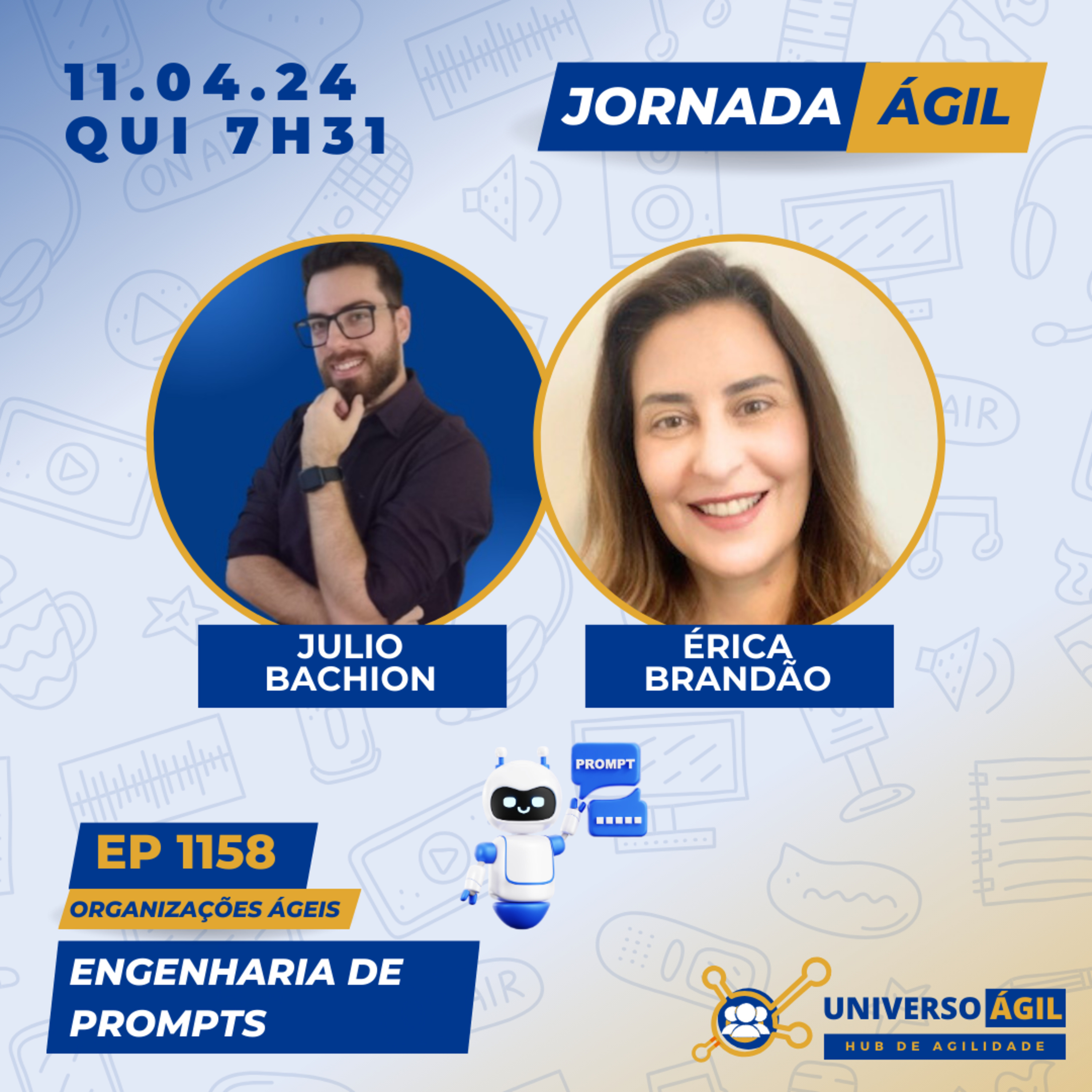 🚀 O quadro #OrganizaçõesÁgeis de quinta-feira, 11.04.24 7h31 (horário Brasília), no programa #JornadaÁgil traz Julio Bachion @juliobachion e Érica Brandão @ericadiasbrandao, para debater sobre engenharia de prompts