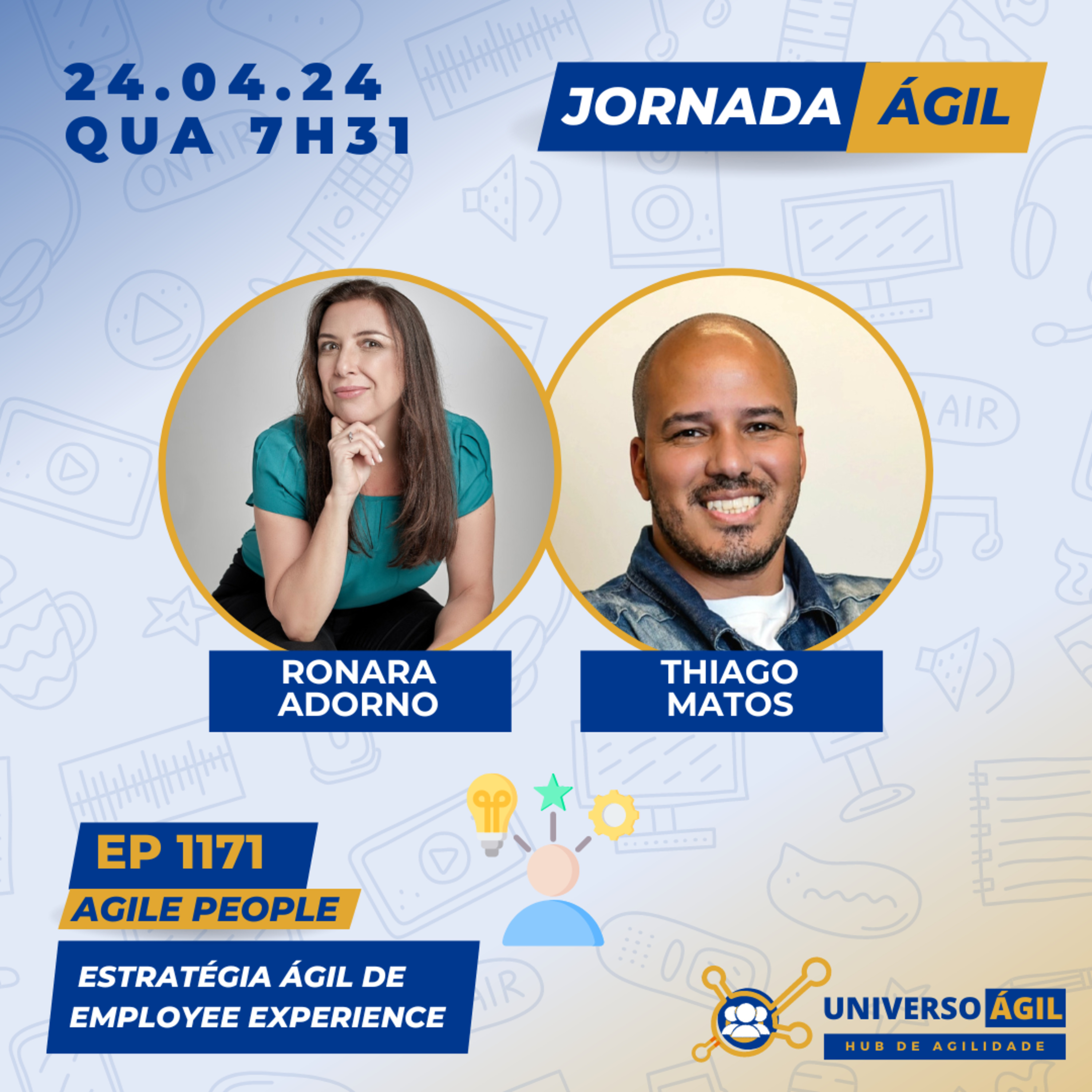 🚀 O quadro #AgilePeople de quarta-feira 24.04.24 7h31 (horário Brasília), no programa #JornadaÁgil, traz Ronara Adorno @ronaraadorno e Thiago Matos @thi.matos_ para debater sobre estratégia ágil de Employee Experience: construção e implementação eficaz de estratégia de EX.