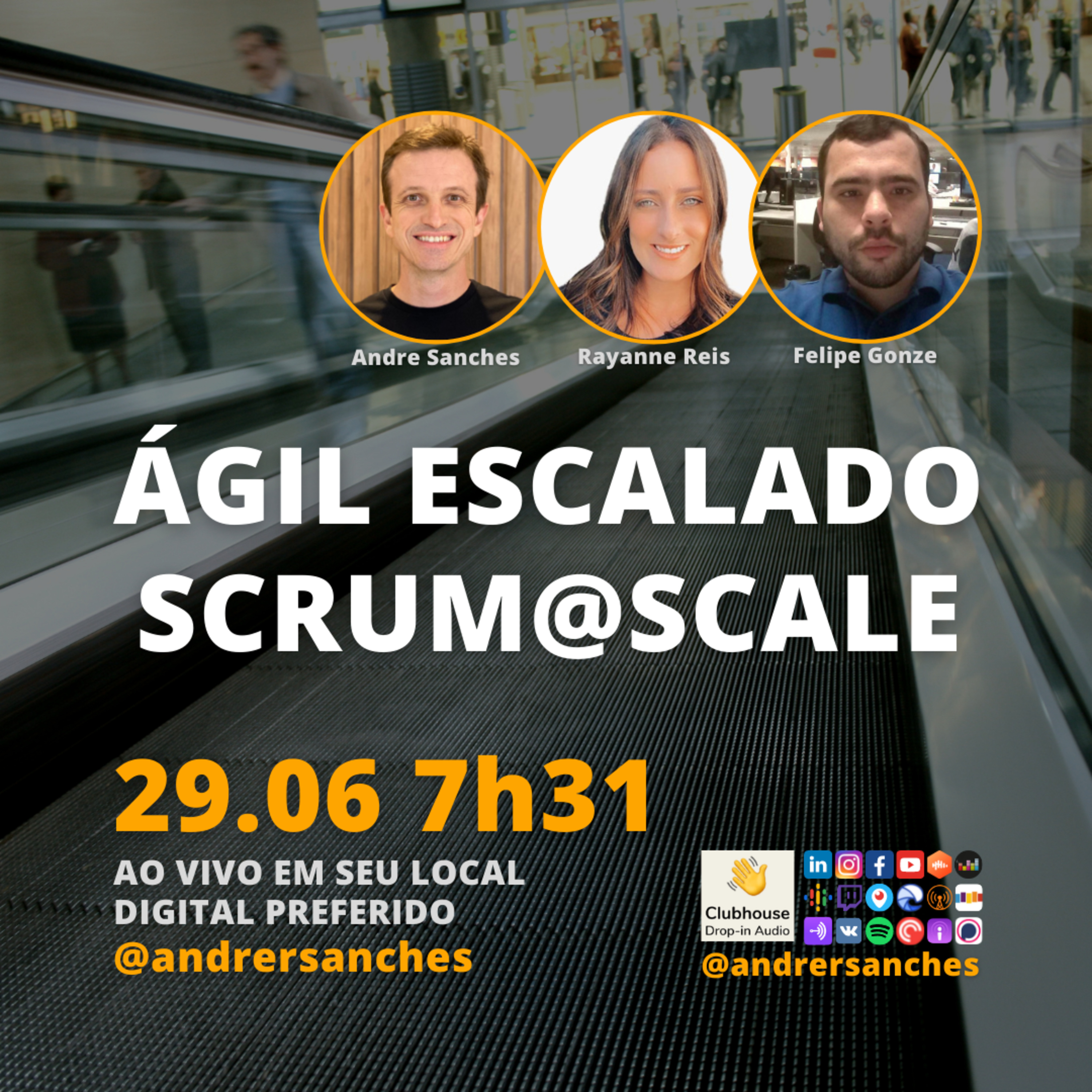 Nesta terça-feira 29.06.21 às 7h31 (horário de Brasília, Brasil) o #JornadaÁgil731 traz Rayanne Reis @rayannemreis, Felipe Gonze @felipegonze, Andre Sanches @andrersanches, convidados e você pro escalarmos juntos o #Scrum@Scale, um #framework bastante utilizado quando é hora de escalar o #ágil.