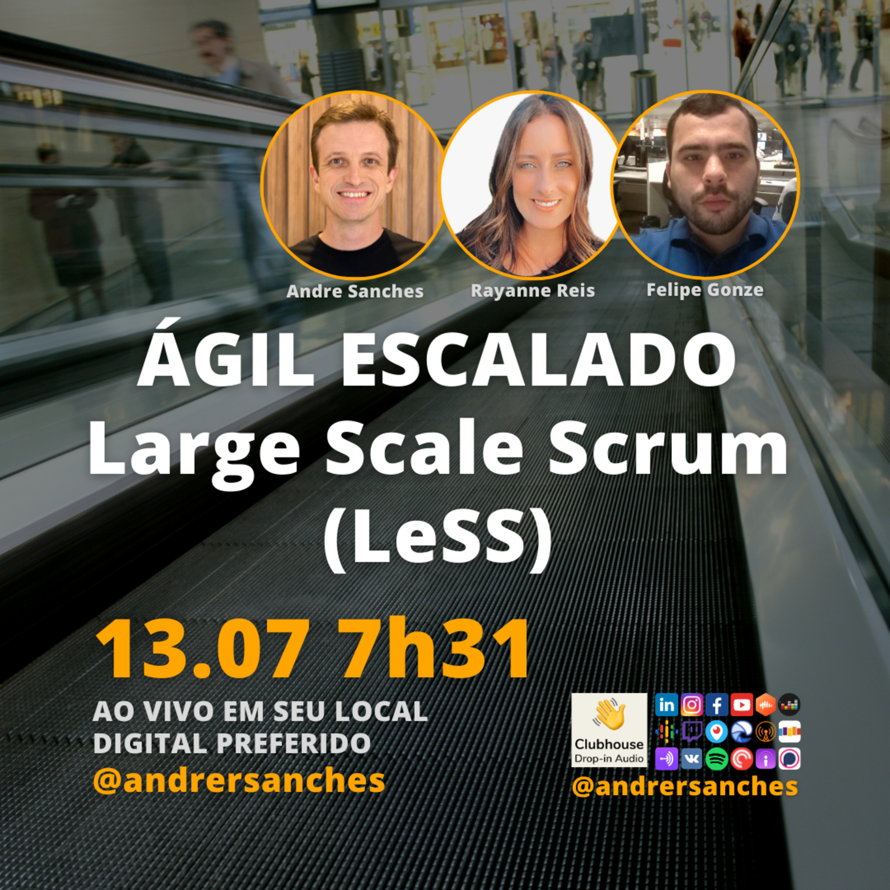 Nesta terça-feira 13.07.21 às 7h31 (horário de Brasília, Brasil) o #JornadaÁgil731 traz Rayanne Reis @rayannemreis, Felipe Gonze @felipegonze, Andre Sanches @andrersanches, convidados e você pro escalarmos juntos o #LeSS, um #framework bastante utilizado quando é hora de escalar o #ágil e o #scrum.