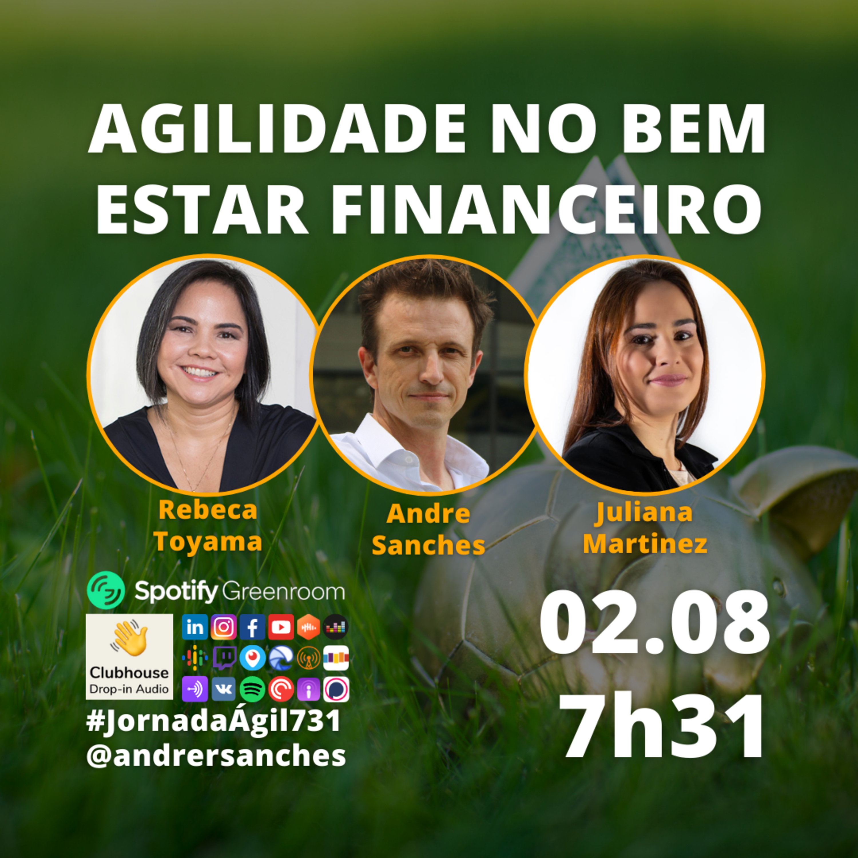 Segunda-feira 02.08.21 às 7h31 (horário de Brasília, Brasil) o #JornadaÁgil731 traz Andre Sanches @andrersanches (Founder @alotuz_oficial), Rebeca Toyama @rebecatoyama (Founder @academia_aci) , Juliana Martinez @jumartinezplanejadora e convidados pro debate junto a você.