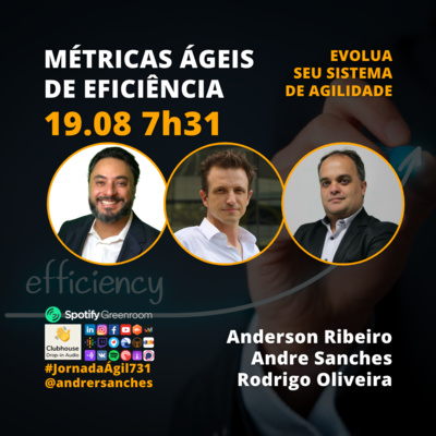 Nesta quinta-feira 19.08.21 às 7h31 (horário de Brasília, Brasil) o #JornadaAgil731 traz Andre Sanches Founder Alotuz @andrersanches, o Agile Coach Anderson Ribeiro @coach_andersonribeiro, o Accredited Kanban Trainer e Kanban Coach Professional (KCP) Rodrigo Oliveira @rodrigo.alm.oliveira e convidados a #agilidade das #métricas de #eficiencia com foco no delivery e fluxos de downstream em sistemas ágeis