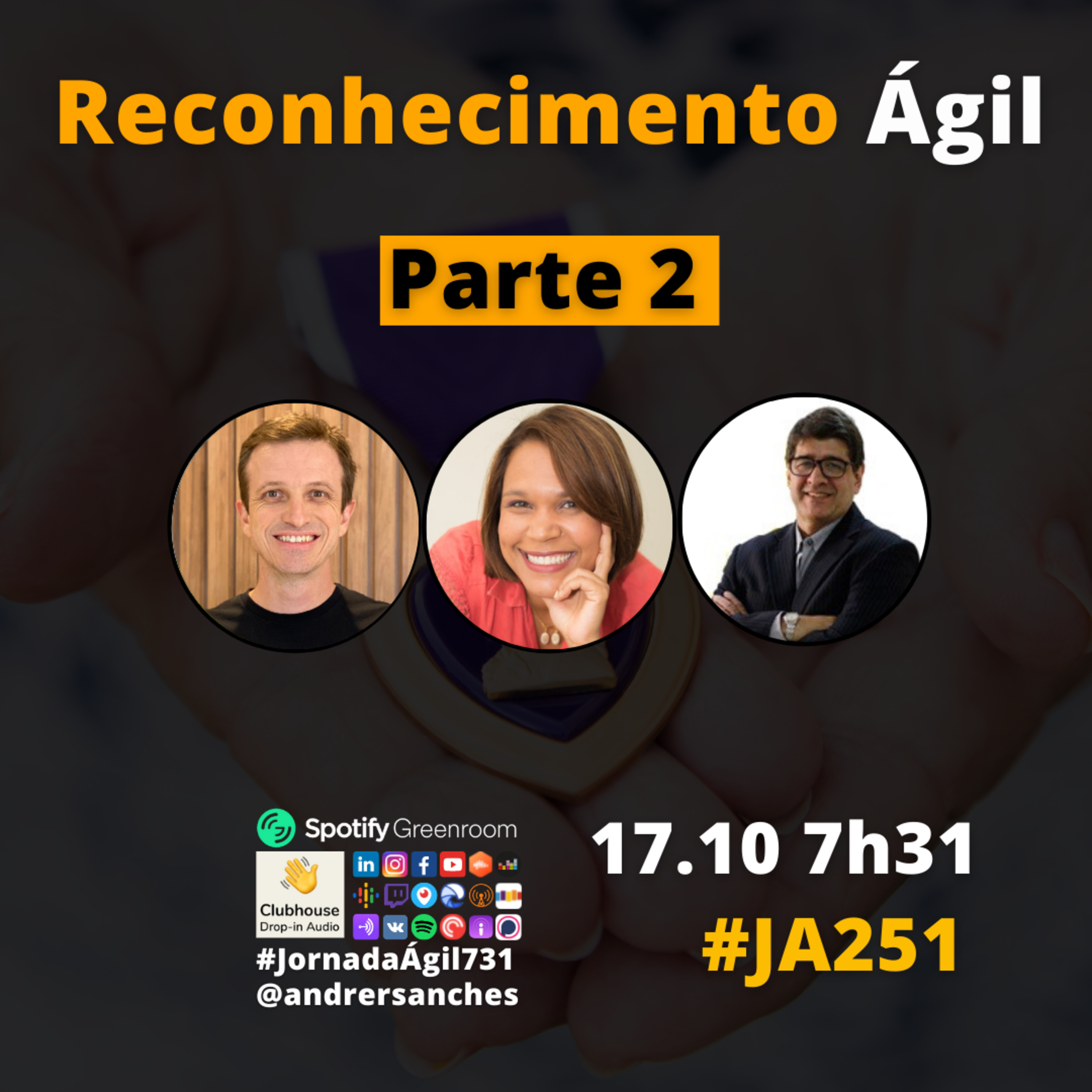 Domingo 17.10.21 7h31 (horário Brasília) #JornadaAgil731 traz Andre Sanches @andrersanches, Fernanda Fagundes @ferfag27, Leopoldo Guzmán @leopoldoguzmanoficial e convidados pra debater a segunda parte com #agilidade como podemos lidar com o reconhecimento e a falta dele no dia a dia.