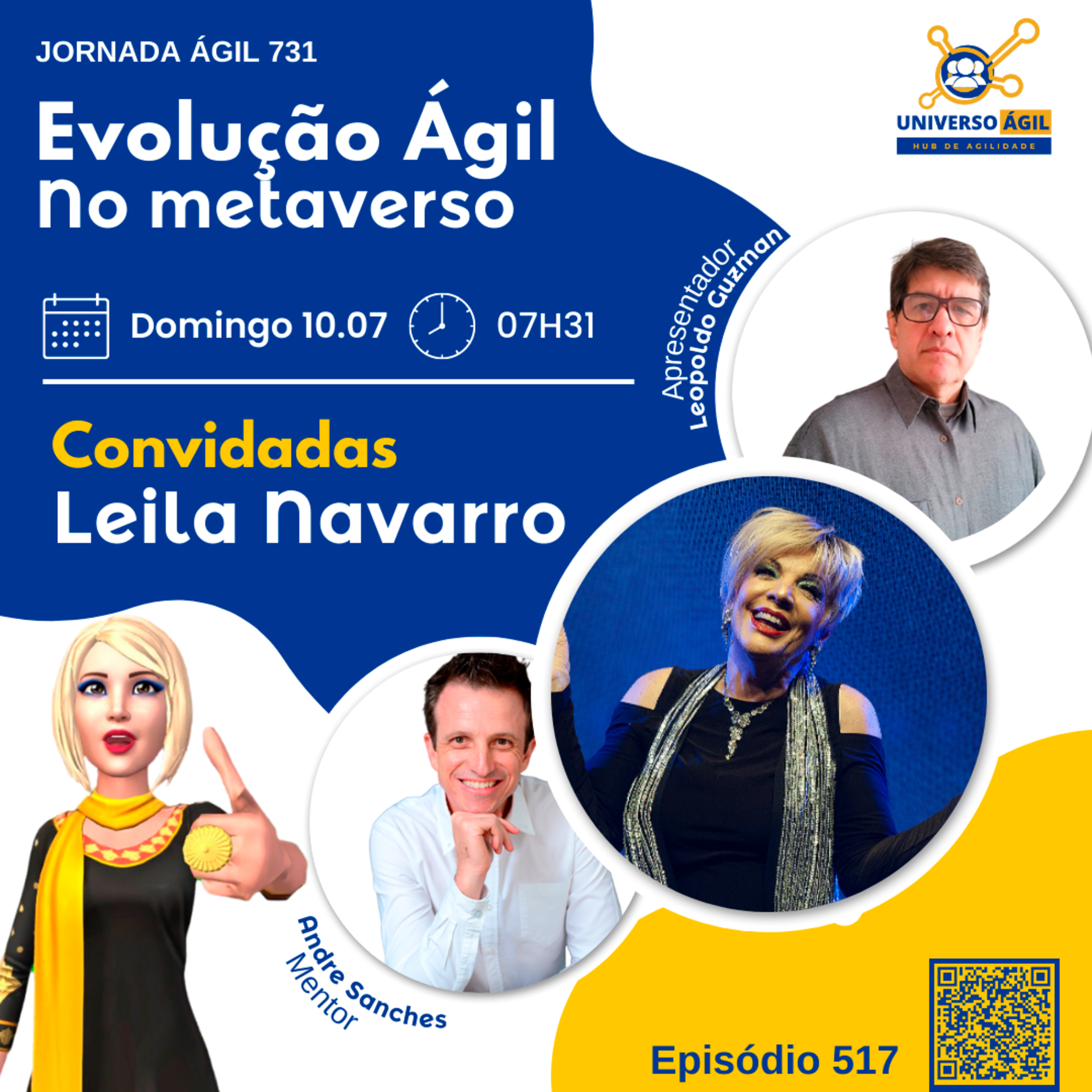 O quadro #EvolucaoAgil neste domingo 10.07 7h31 (horário Brasília) do programa #JornadaAgil731 traz o apresentador Leopoldo Guzmán @leopoldoguzmanoficial a convidada Leila Navarro @leilanavarrooficial as pessoas curadoras e moderadoras Andre Sanches @andrersanches e você para um painel/debate sobre Metaverso e Evolução humana, para onde iremos?