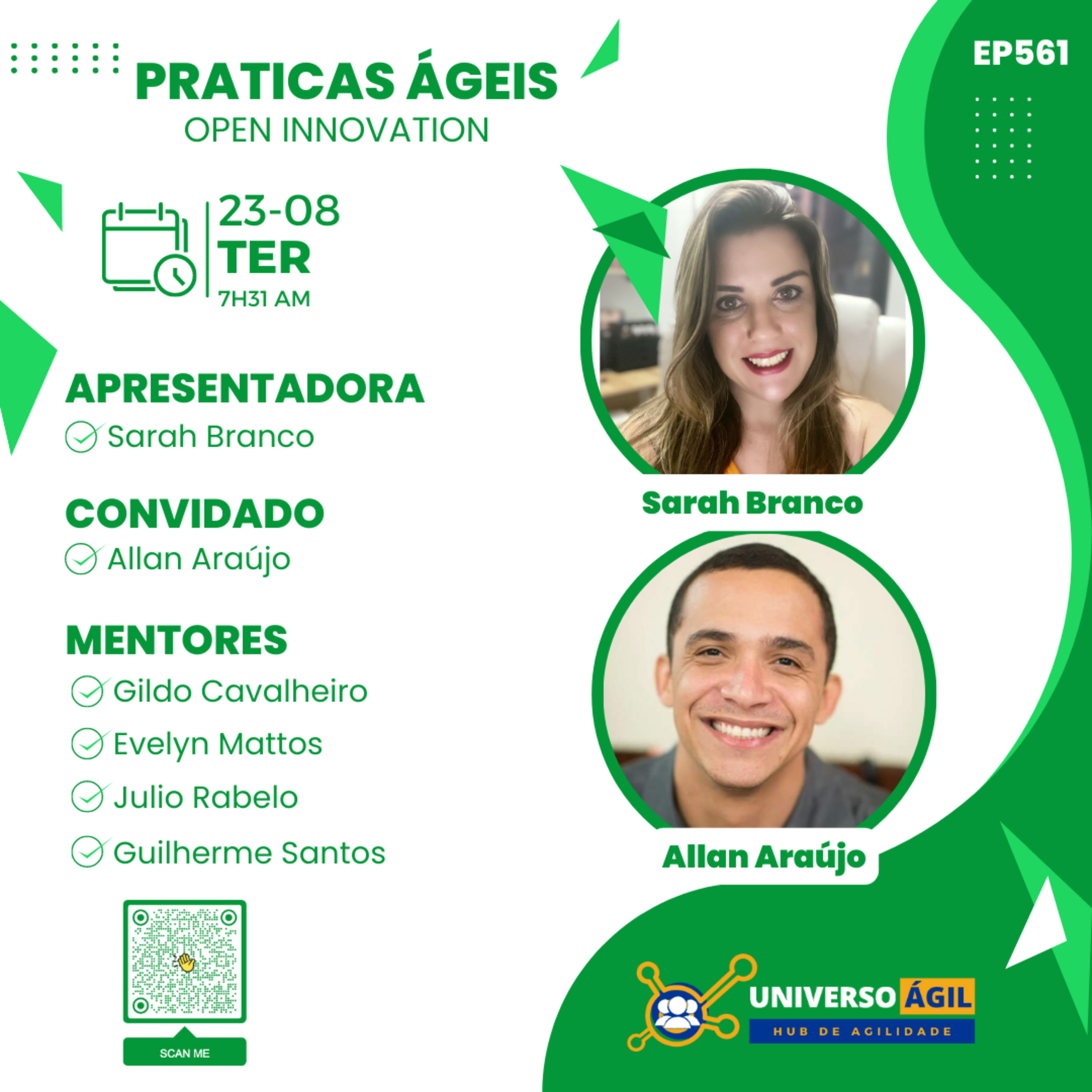 O quadro #PraticasAgeis desta terça-feira 23.08 7h31 (horário Brasília) no programa #JornadaAgil731 traz a apresentadora Sarah Branco @sarah.m.branco o convidado Allan Áraujo @allanrsa e o seleto grupo de pessoas moderadoras/curadoras Gildo Carvalheiro @gildocavalheiro, Evelyn Mattos @evelynmattoss, Julio Rabelo @julio__rabelo, Guilherme Santos g.santosagile e você para debater Open Innovation