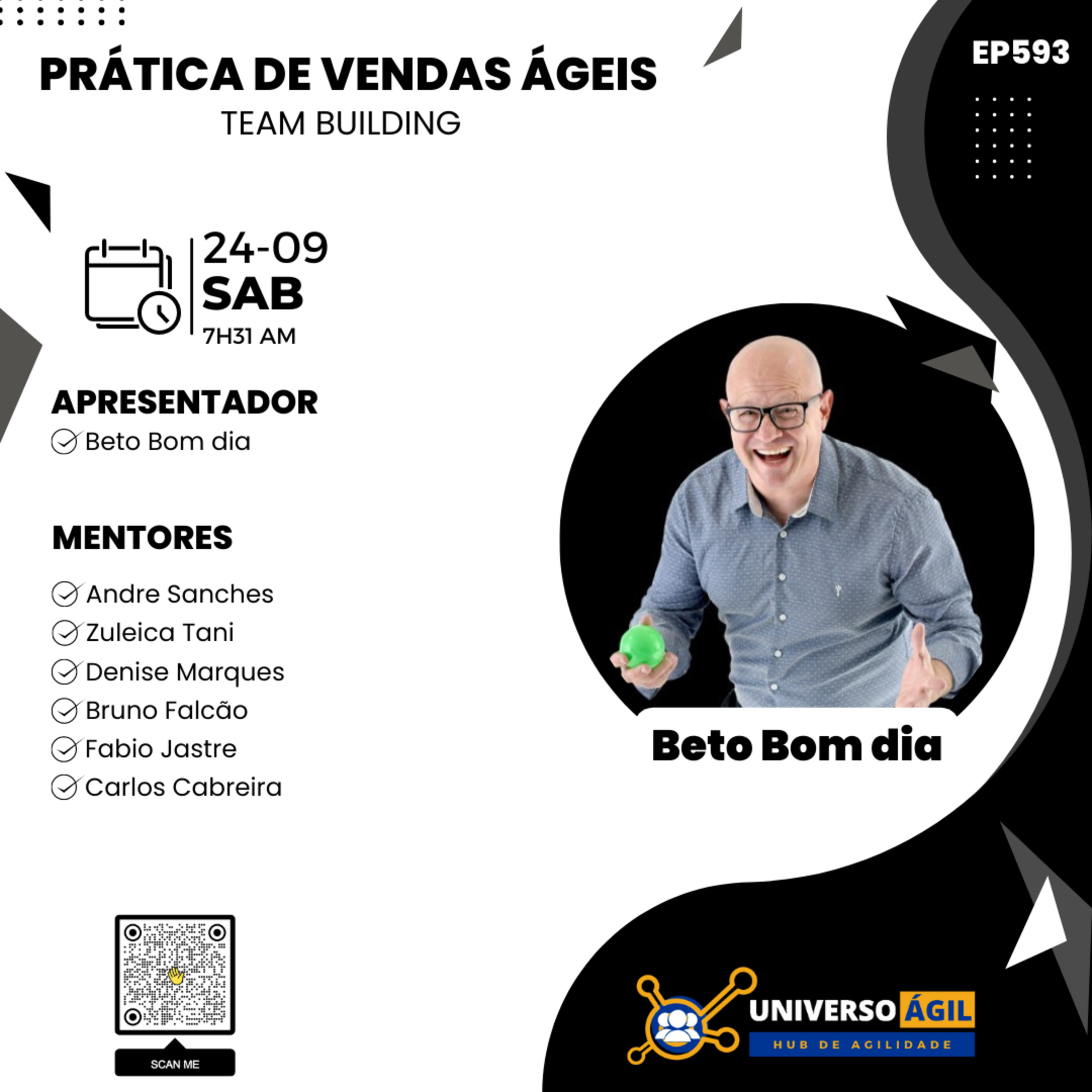 O quadro #VendasAgeis deste sábado 24.09 7h31 no programa #JornadaAgil731 traz o apresentador Beto Bom Dia @betobomdia e o seleto time de pessoas curadoras e moderadoras Andre Sanches @andrersanches, Denise Marques @denise_marques_oficial, Bruno Falcão @brunofalcaos, , Fabio Jastre @fabiojastre, Cabreira @carloscabreira, Zuleica Tani @zuleicatani_oficial e você para debater Team Building