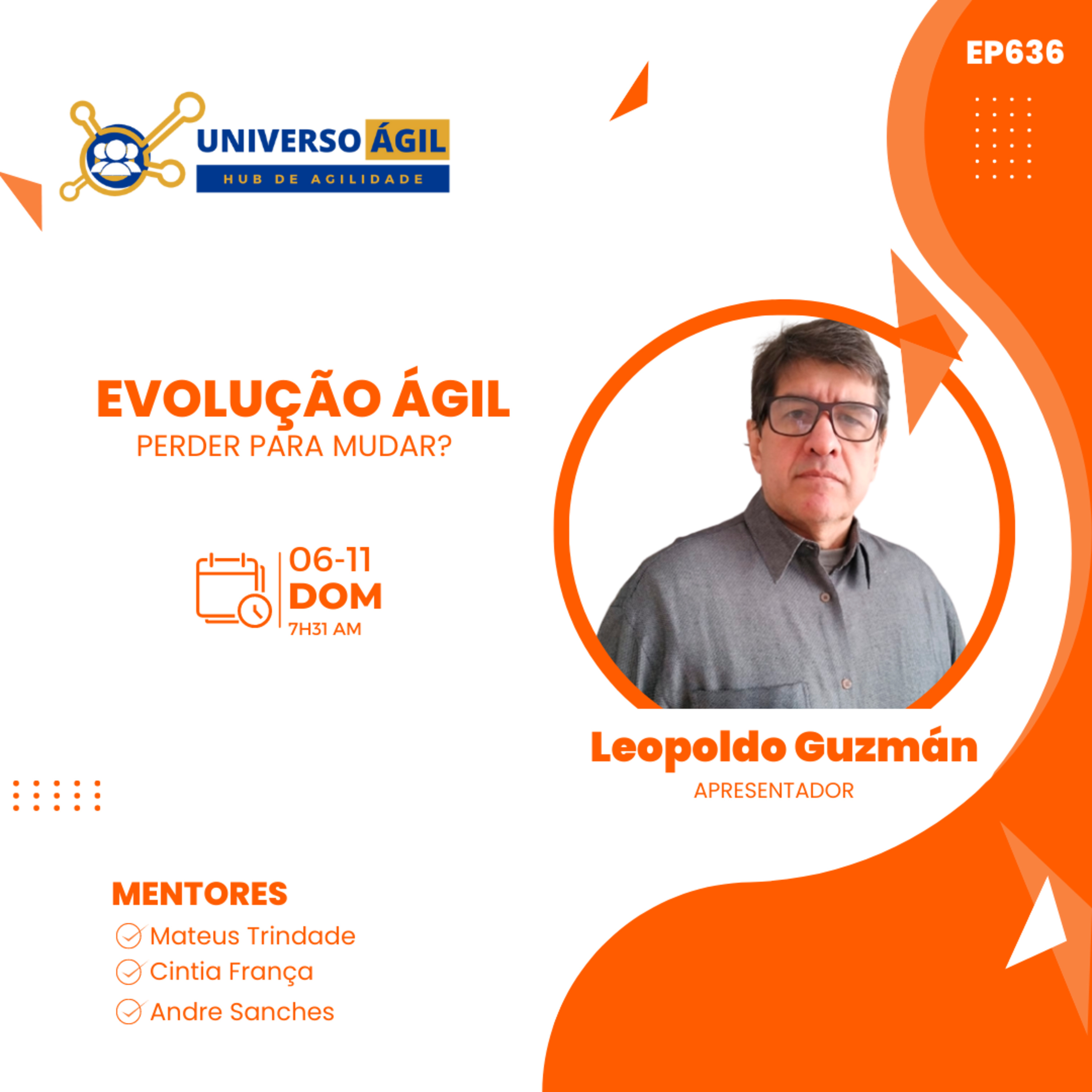 O quadro #EvolucaoAgil neste domingo 06.11 7h31 (horário Brasília) do programa #JornadaAgil731 traz o apresentador Leopoldo Guzmán @leopoldoguzmanoficial e as pessoas curadoras e moderadoras Cíntia França @cintiasanches.ibcs ,Andre Sanches @andrersanche, Mateus Trindade @trindadevoador e você para um painel/debate sobre O que você precisa perder para ser ágil e mudar