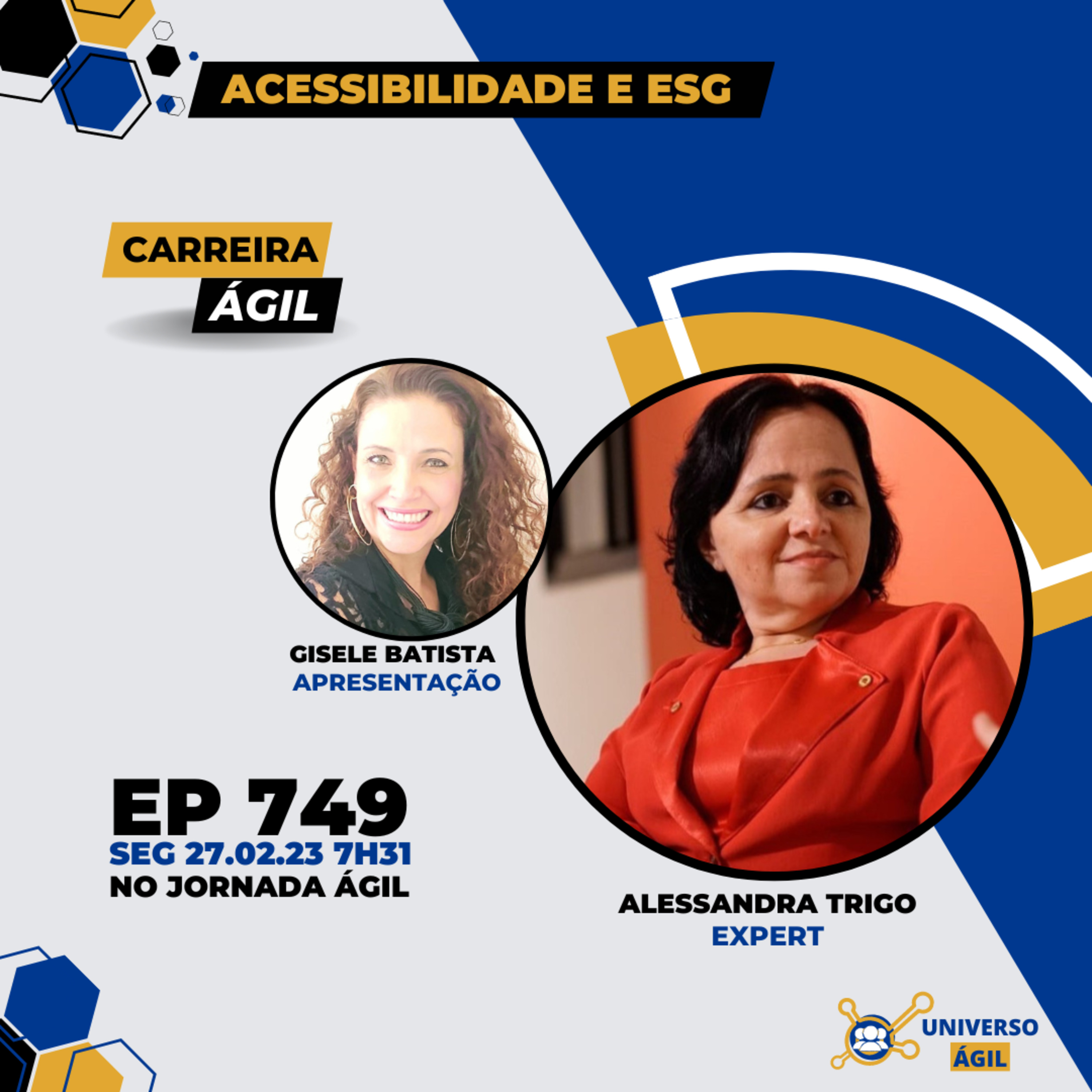 O quadro #CarreiraÁgil desta segunda-feira 27.02 7h31 (horário Brasília) do programa #JornadaAgil731 traz como apresentação Gisele Victor Batista @giselevictorbatista, a pessoa expert Alessandra Trigo @alessandratrigoalves e as pessoas moderadoras/curadoras Julio Bachion @juliobachion , Felipe Gonze @felipegonze, Gildo Cavalheiro @gildo.cavalheiro e você para debater Acessibilidade e ESG