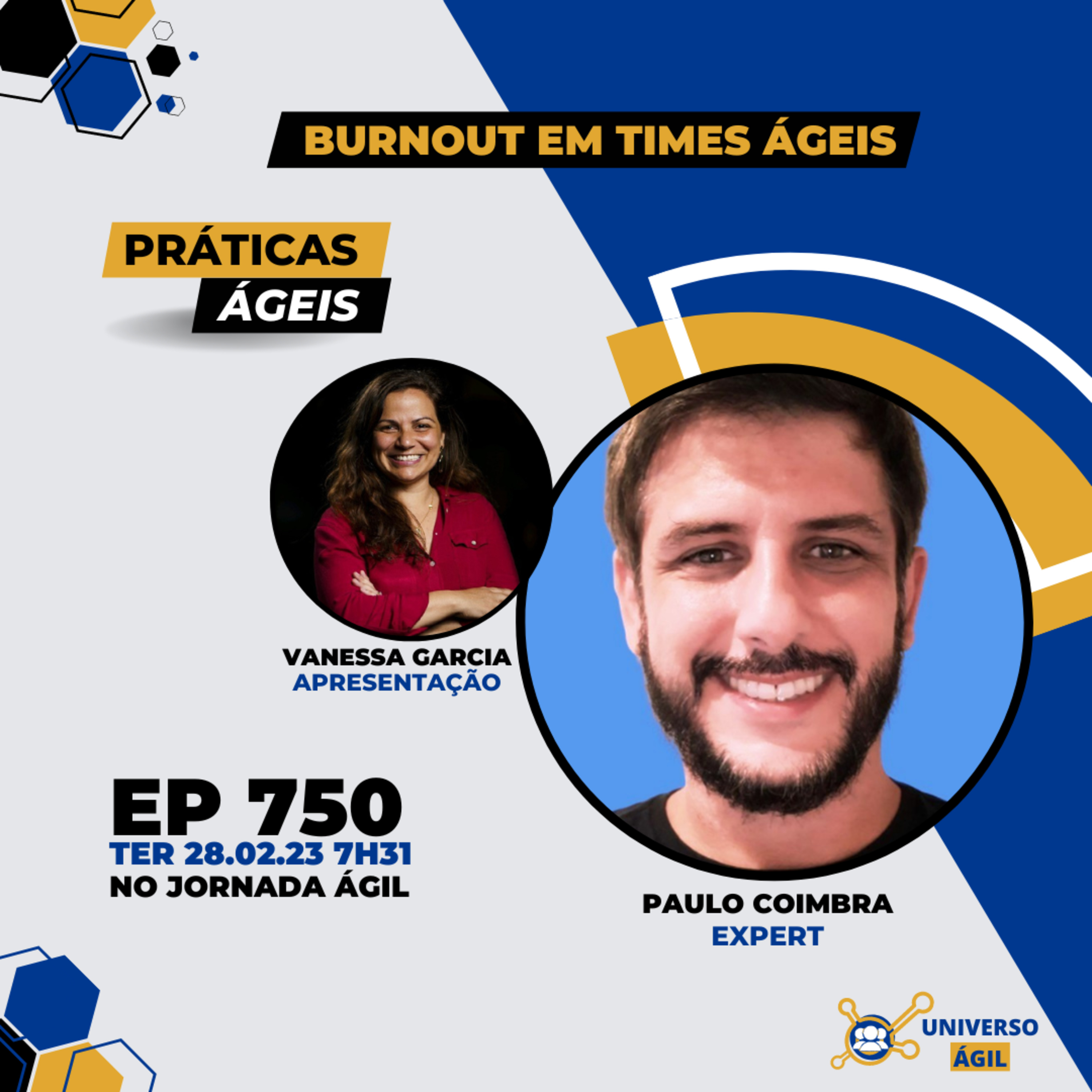 O quadro #PraticasAgeis desta terça-feira 28.02 7h31 (horário Brasília) no programa #JornadaAgil731 traz como apresentação Vanessa Blas @_bla_com_apesquisadora , a pessoa expert Paulo Coimbra @paulohcapobianco e o seleto grupo de pessoas moderadoras/curadoras Evelyn Mattos @evelynmattoss, Guilherme Santos @g .santosagile e você para debater Burnout em times ágeis