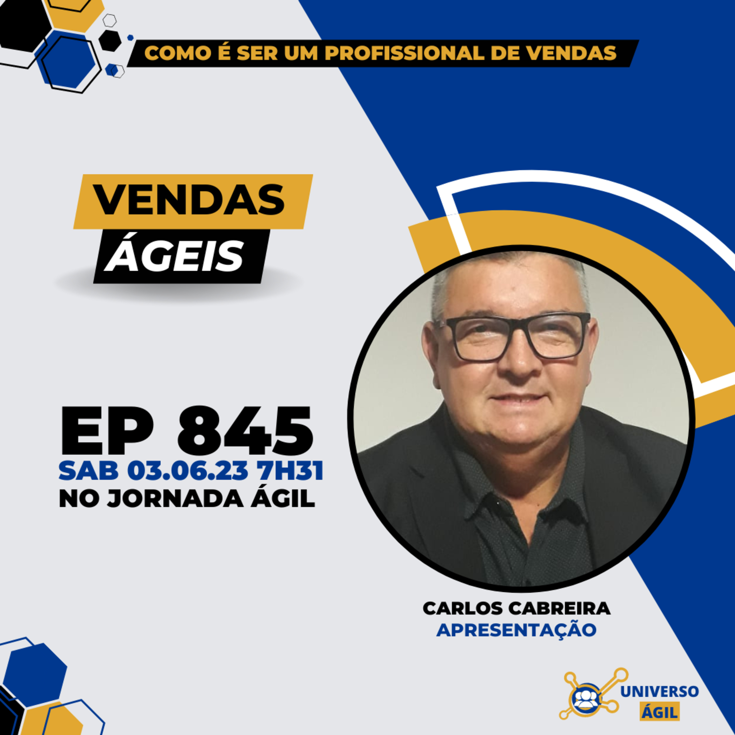 O quadro #VendasAgeis deste sábado 03.06 7h31 no programa #JornadaAgil731 traz como apresentação Carlos Cabreira @carloscabreira.oficial e o seleto time de pessoas curadoras e moderadoras Denise Marques @denise_marques_oficial, Zuleica Tani @zuleicatani_oficial, Bruno Falcão @brunofalcaos, Fabio Jastre @fabiojastre e você para debater Como é ser um profissional de vendas