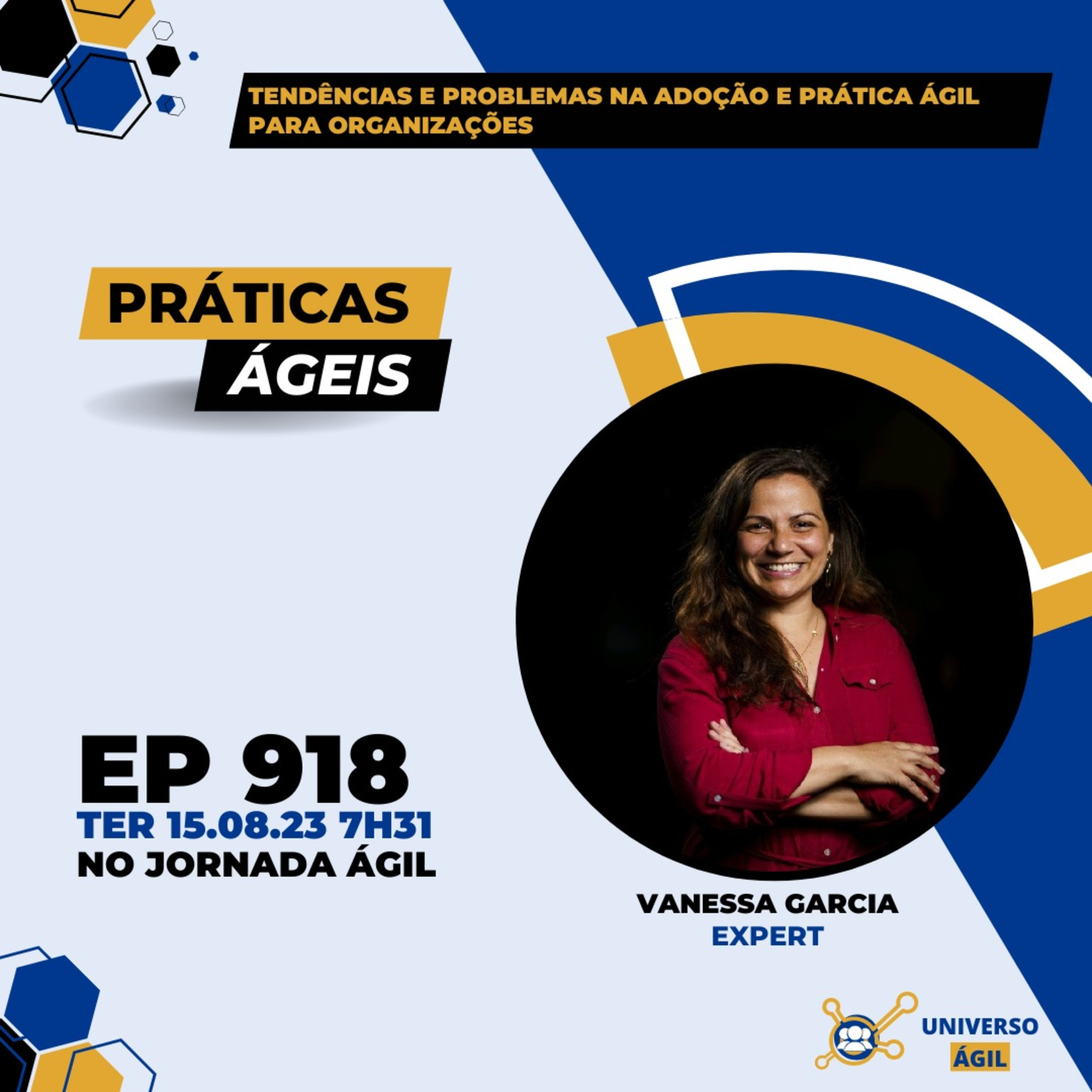 O quadro #PraticasAgeis desta terça-feira 15.08 7h31 (horário Brasília) no programa #JornadaAgil731 traz a pessoa expert Vanessa Garcia e o seleto grupo de pessoas moderadoras/curadoras Macgaiver Duarte @macgaiver_duarte, Julio Bachion @juliobachion, Roger Bif @rogerbif e você para debater Tendências e problemas na adoção e prática ágil para organizações