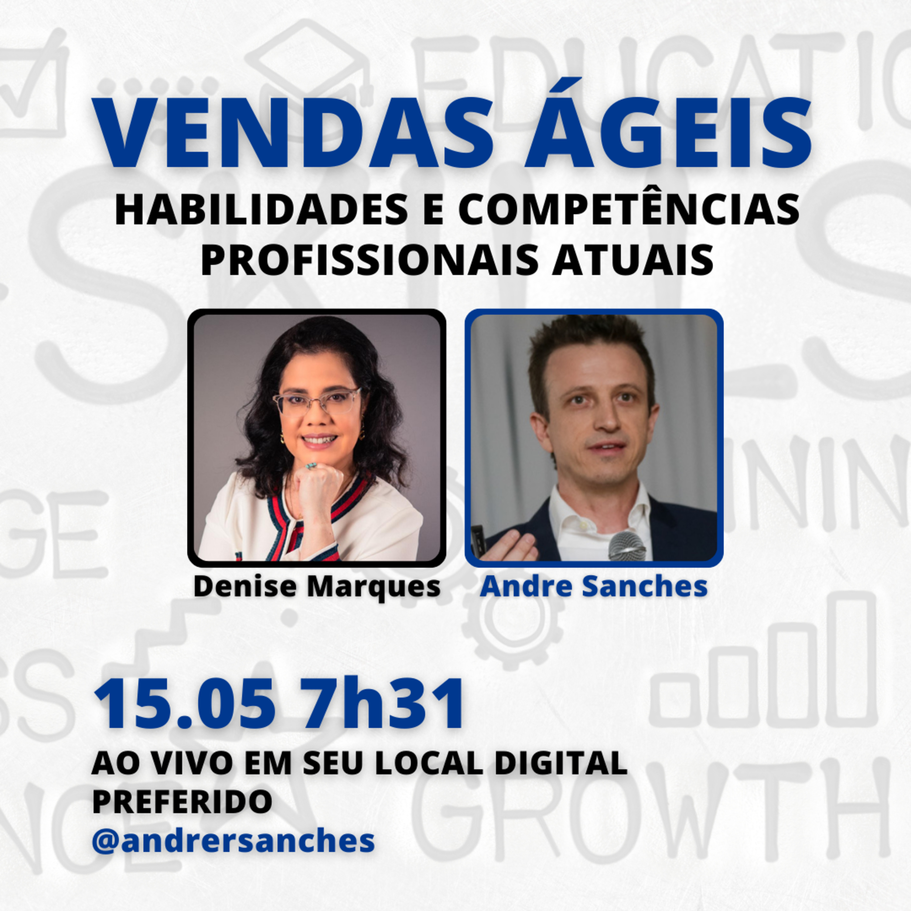 Sábado 15.05.21 7h31 no #JornadaÁgil731 Andre Sanches @andrersanches, Denise Marques @denise_marques_oficial convidam você pro #debate.
