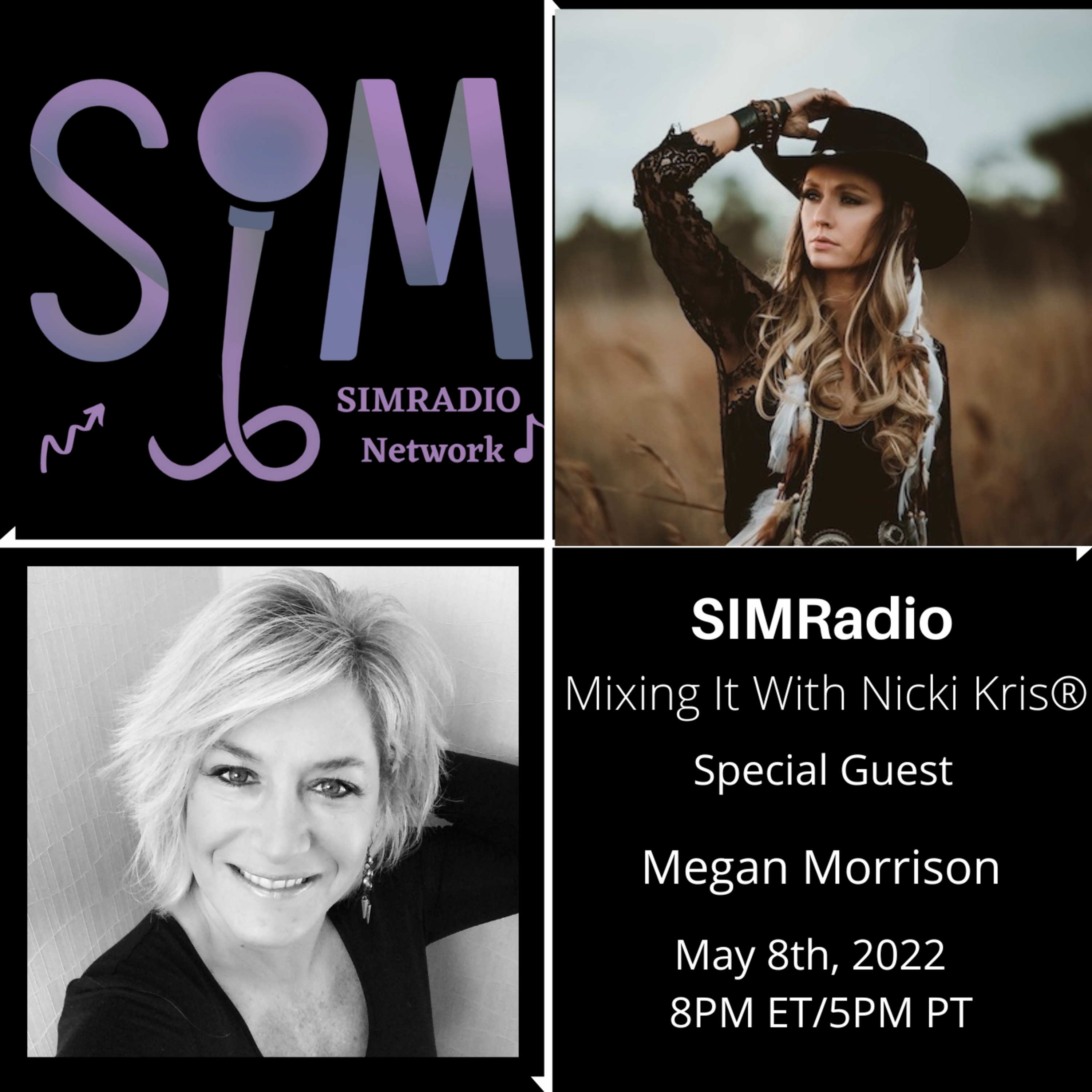 SIMRADIO is honored to share singer-songwriter and fire performer Megan Morrison. Join us for Mixing It with Nicki Kris on May 8th 2023 at 8:00PM ET/5:00PM PT. Connect with Megan Morrison on Facebook, Instagram, and YouTube.