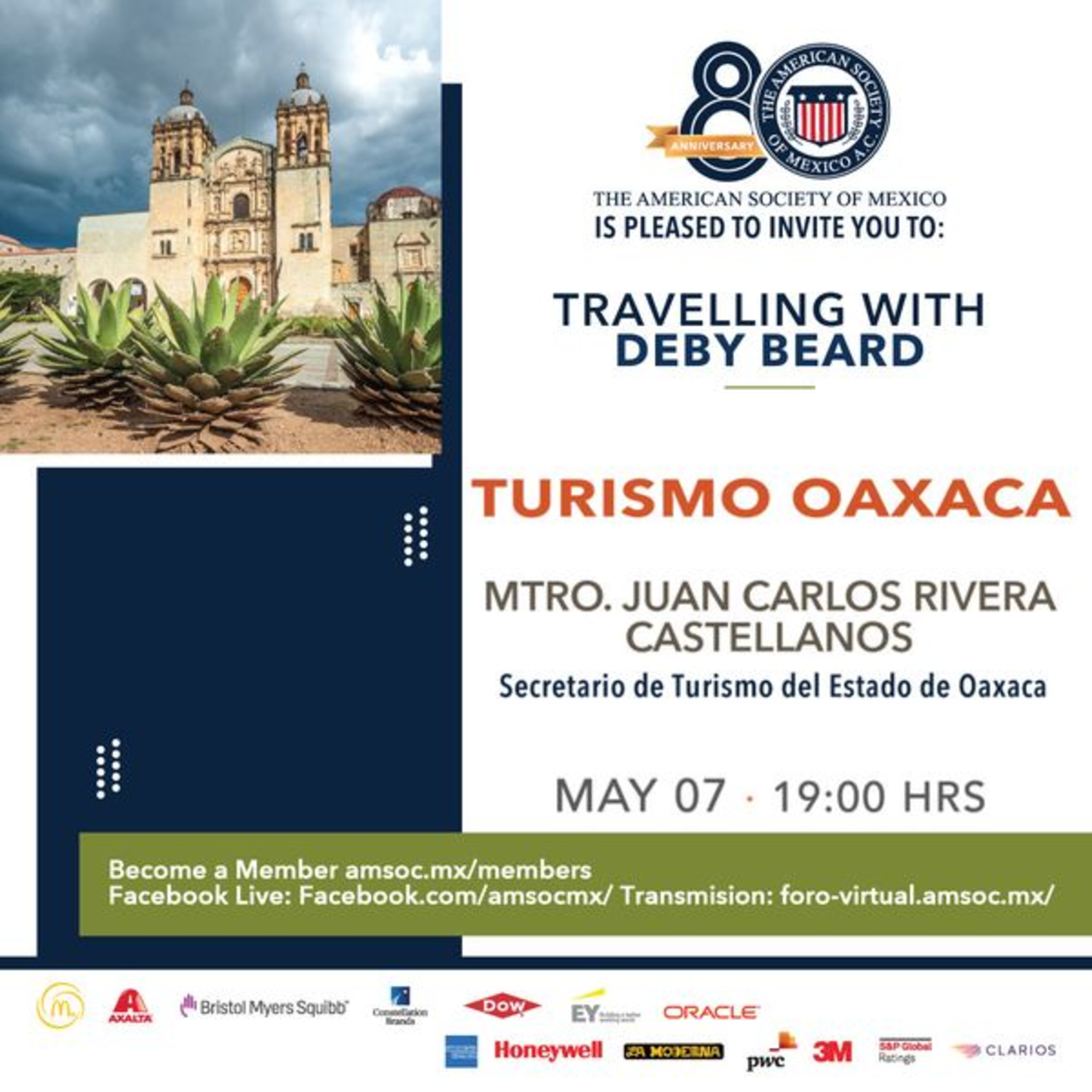 Deby Beard nos habla acerca de la riqueza turÃstica de Oaxaca y de su gastronomÃa con el Mtro. Juan Carlos Rivera Castellanos, Srio. de Turismo del Estado.