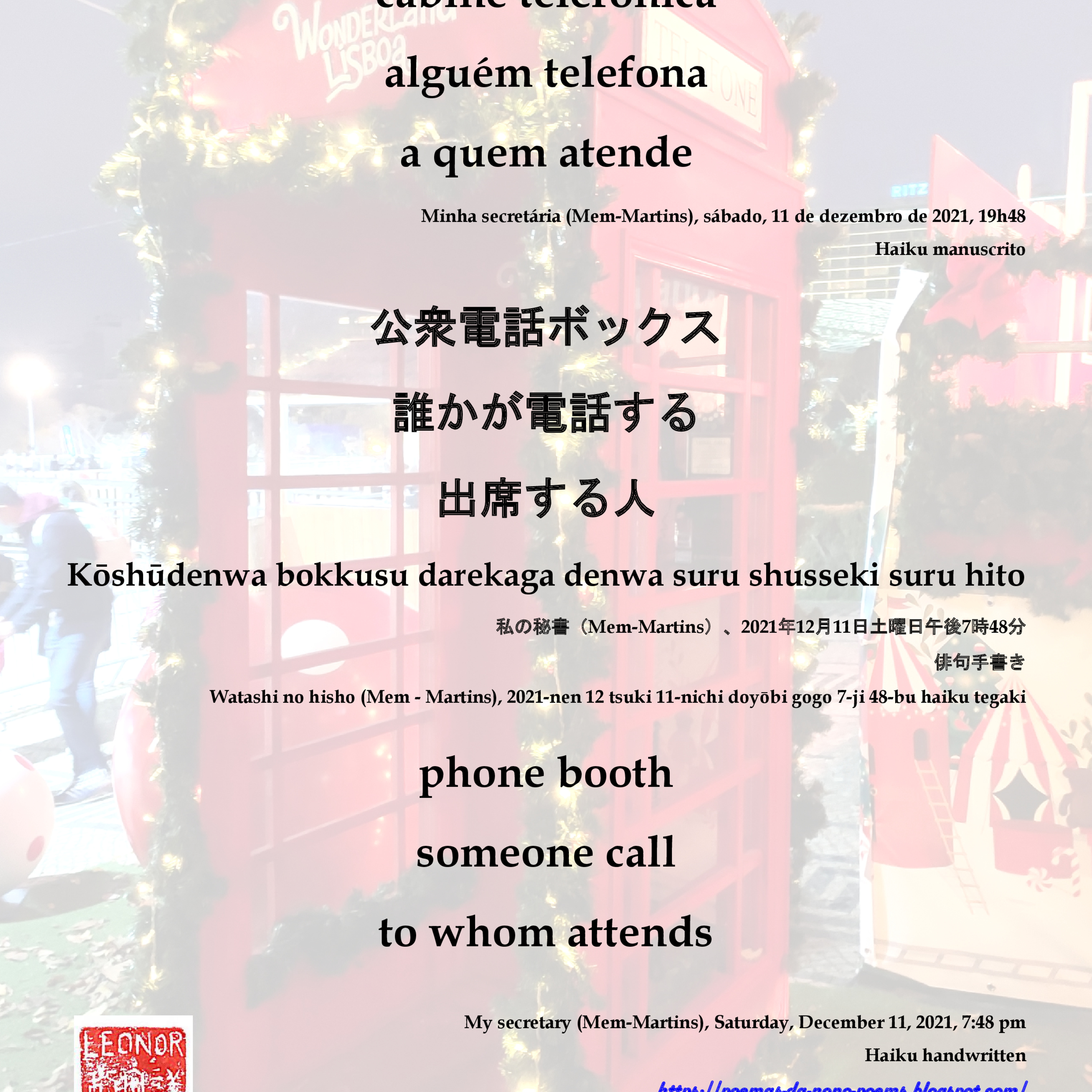 Ver mais / see more: https://poemas-da-nono-poems.blogspot.com/2021/12/haiku-haikai-cabine-telefonica-phone.html
