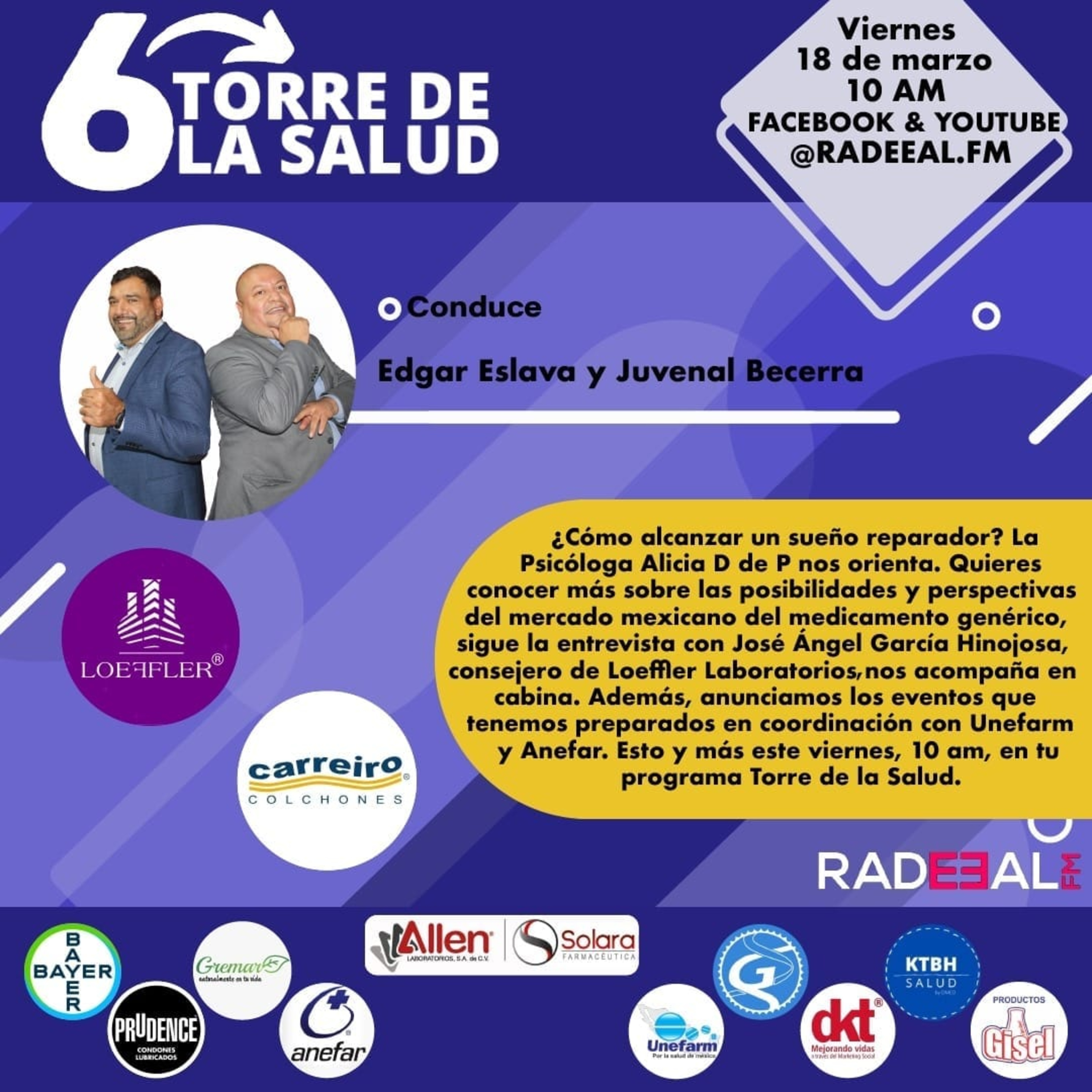 ¿Cómo logras un sueño reparador? La psicóloga Alicia D de P, Doctora Descanso nos orienta. Conoce más sobre el mercado del medicamento energético con los amigos de Loeffler, entre otros temas. Es Torre de la Salud