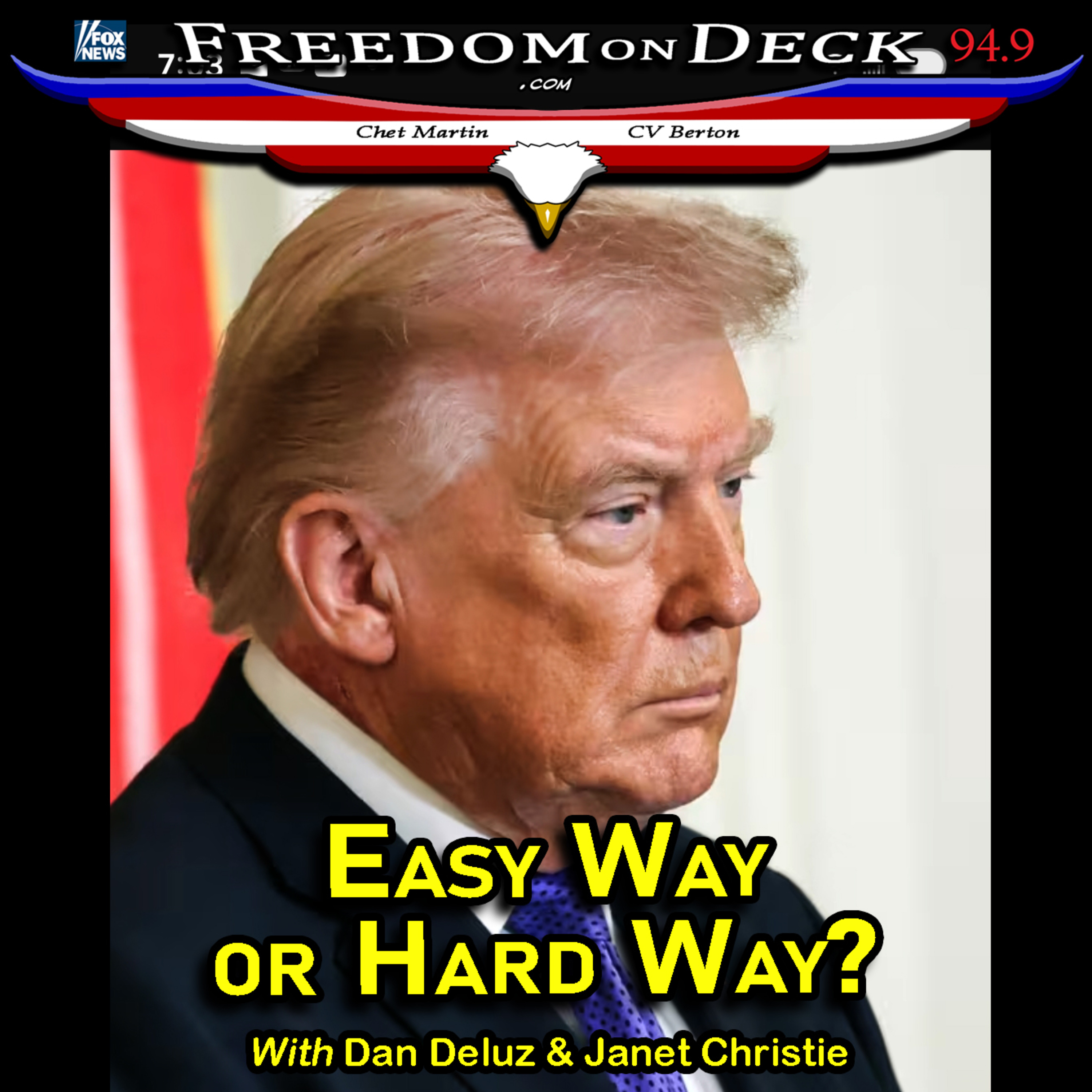 Our live shows can be heard Saturdays from 1:30 to 3pm EST on local radio FM station Fox News 94.9 WJJF - covering Connecticut, Rhode Island and Long Island, NY. Listen live from http://freedomondeck.com/ - and find the archives there and on most video platforms, and on Spotify!