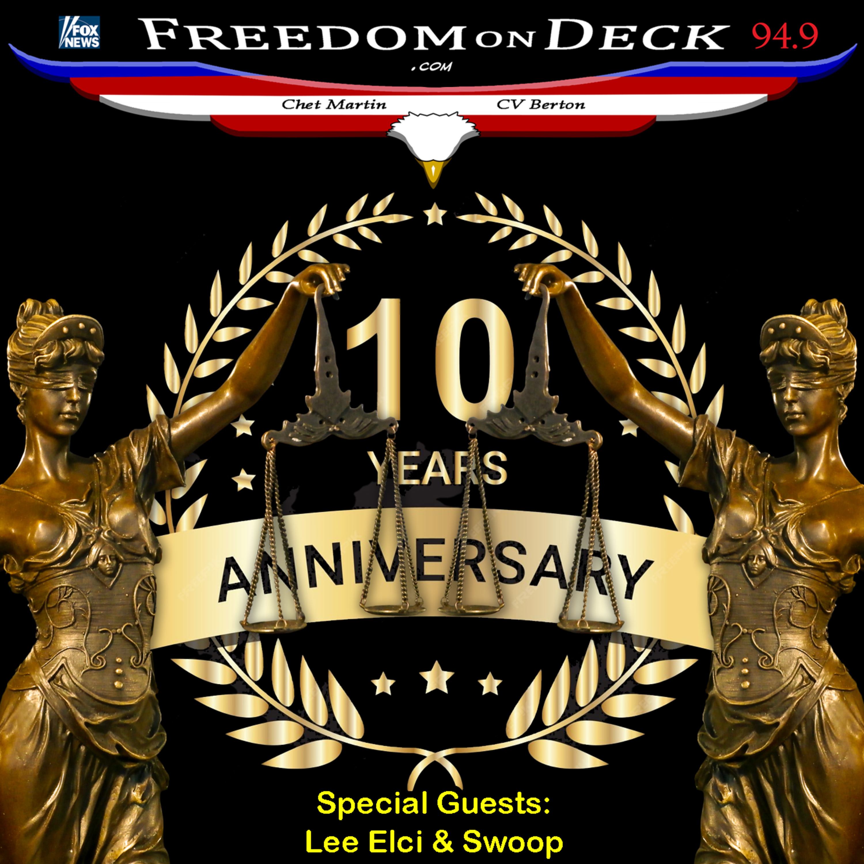 Our live shows can be heard Saturdays from 1:30 to 3pm EST on local radio FM station Fox News 94.9 WJJF - covering Connecticut, Rhode Island and Long Island, NY. Listen live from http://freedomondeck.com/ - and find the archives there and on most video platforms, and on Spotify!