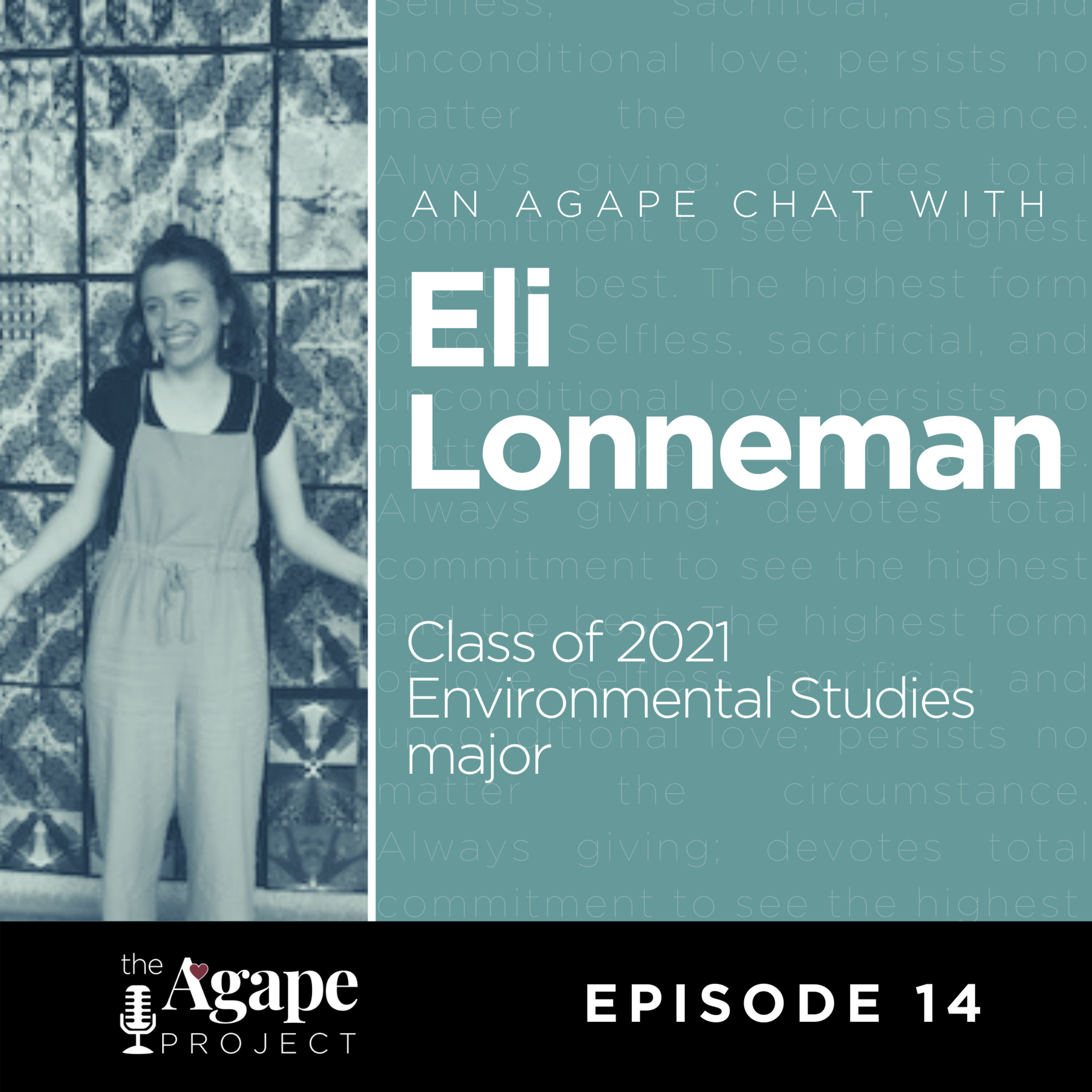 Class of 2021 Environmental Science major Eli Lonneman has an Agape Chat with Peer Minister Abby Rosys to talk about how Eli's passion for sustainability and care for the planet interact and are influenced by her faith. Eli also talks about her spiritual journey over her lifetime and how Thomas Merton, specifically, has played a role in her spiritual development while at Bellarmine.
