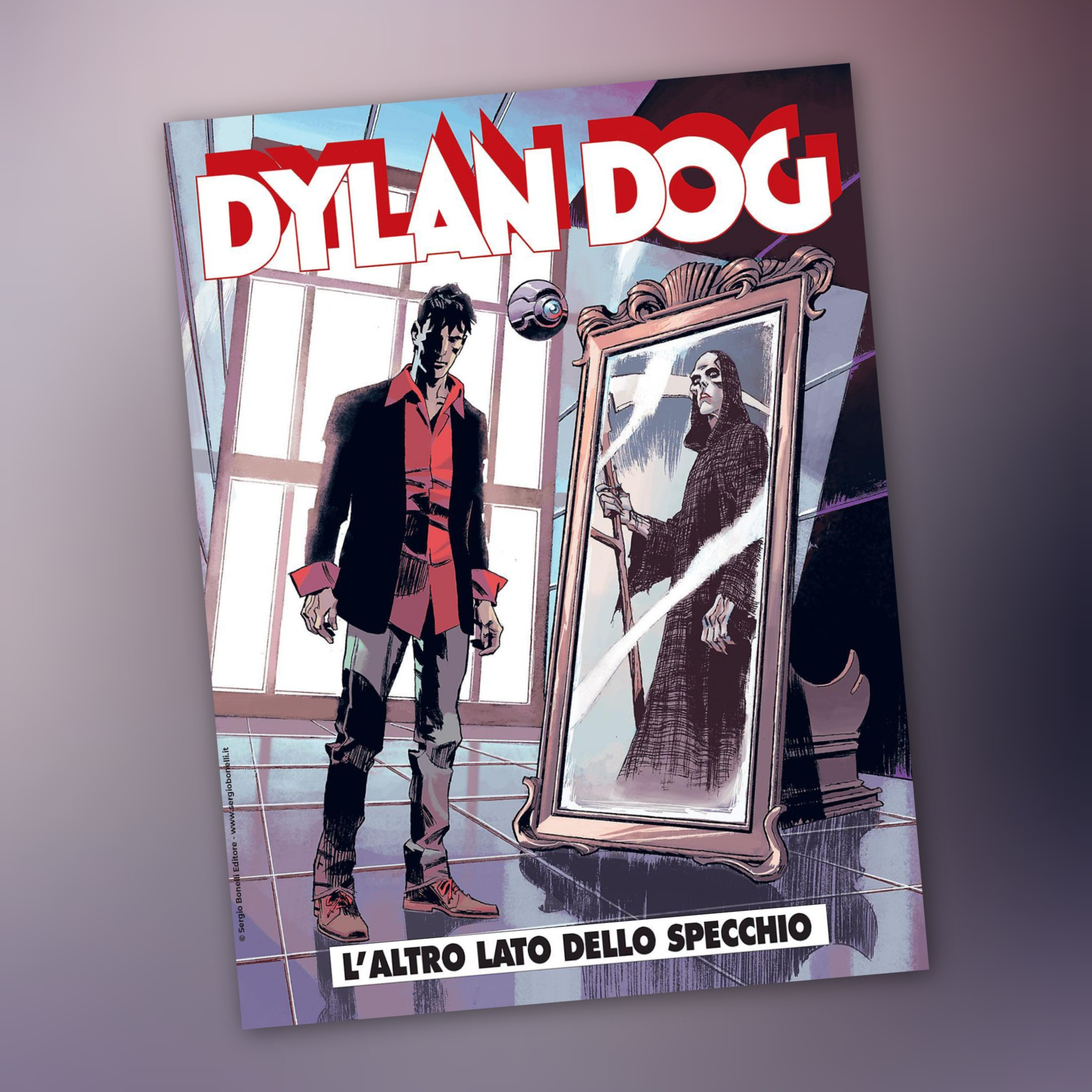Dylan Dog 446 "L'altro lato dello specchio", scritto da Barbara Baraldi, disegnato da Davide Furnò, Nicola Mari e Marco Nizzoli, edito dalla Sergio Bonelli Editore.