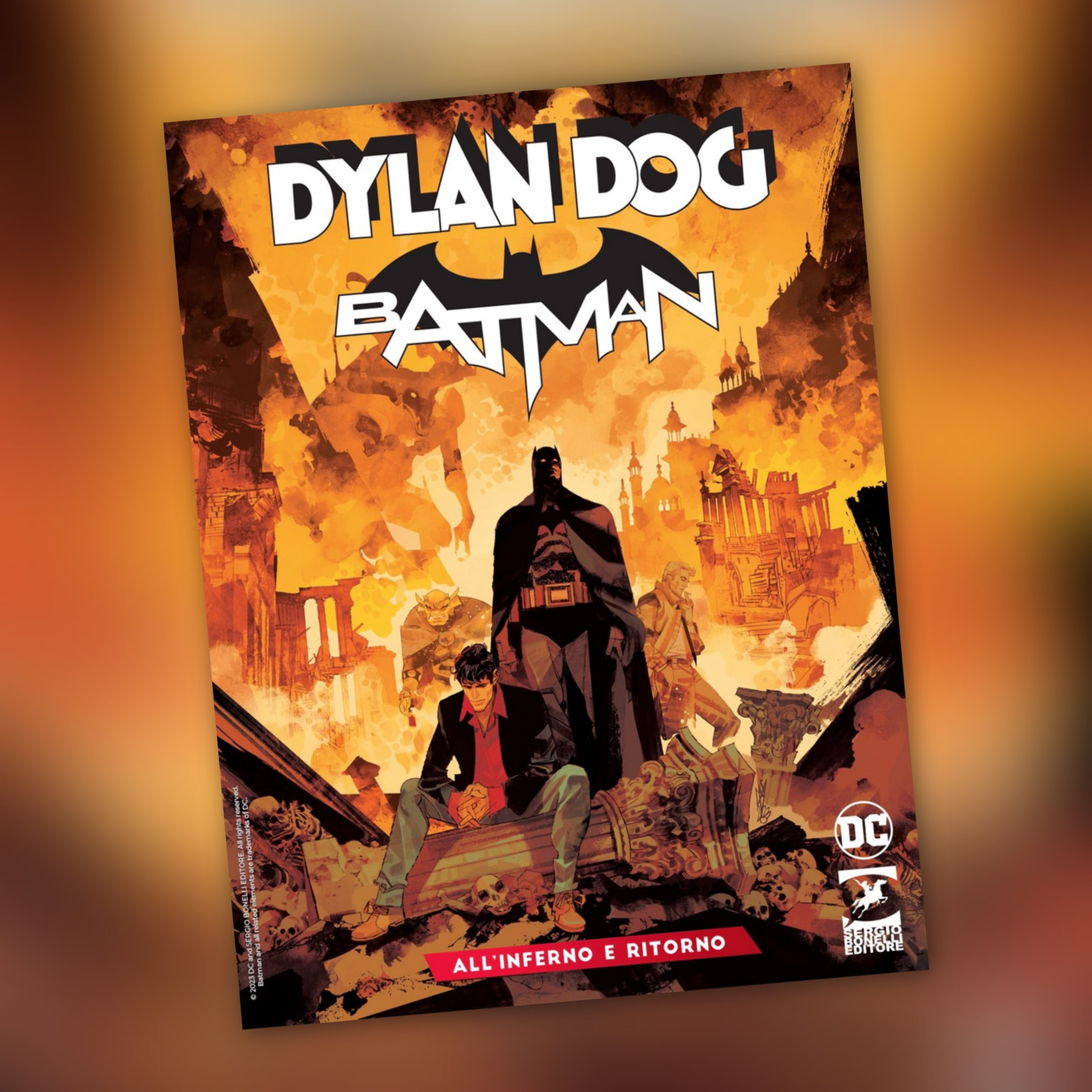 Dylan Dog / Batman 2 (di 3) "All'inferno e ritorno", scritto da Roberto Recchioni, disegnato da Werther Dell'Edera, chine di Gigi Cavenago, edito dalla Sergio Bonelli Editore.