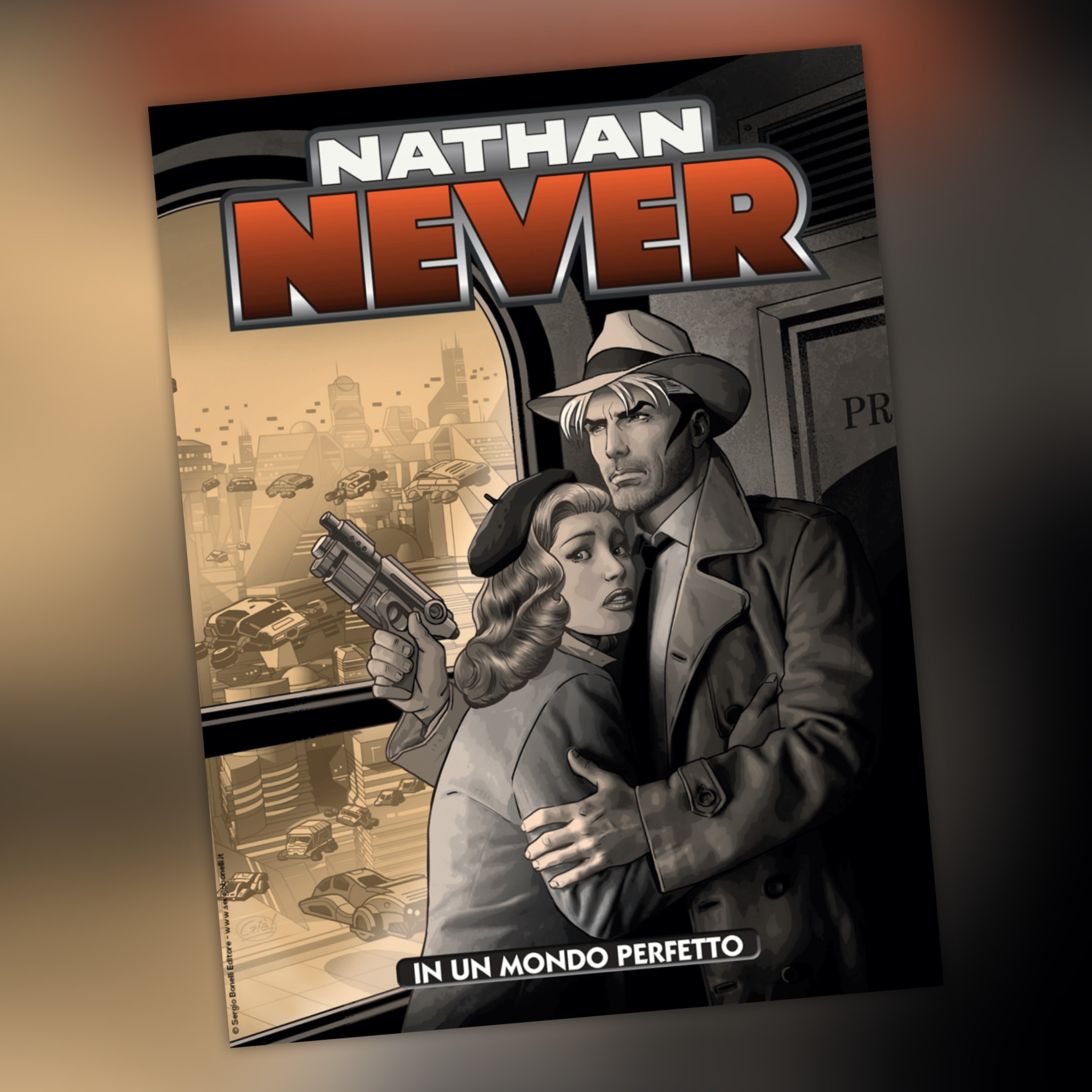 Nathan Never 380 "In un mondo perfetto", scritto da Michele Medda, disegnato da Roberto De Angelis e Simona Denna, edito dalla Sergio Bonelli Editore.