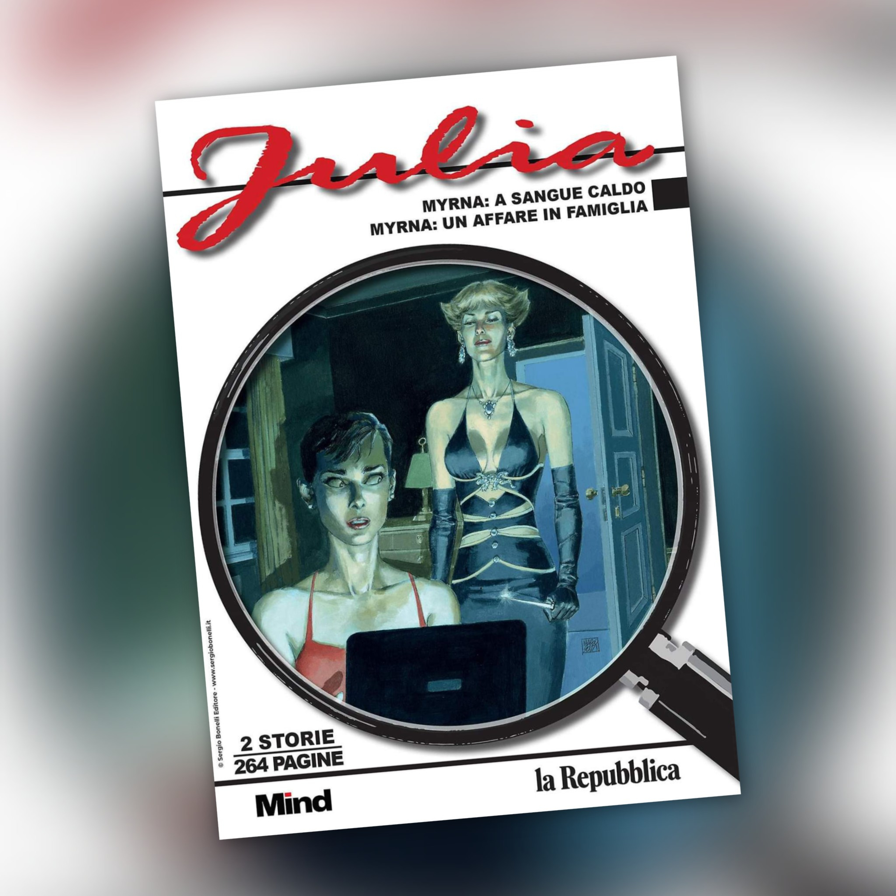 Ristampa Julia 9 "Myrna: a sangue caldo - Myrna: un affare in famiglia", scritte da Giancarlo Berardi e Maurizio Mantero, disegnate da Laura Zuccheri, edito da Repubblica.