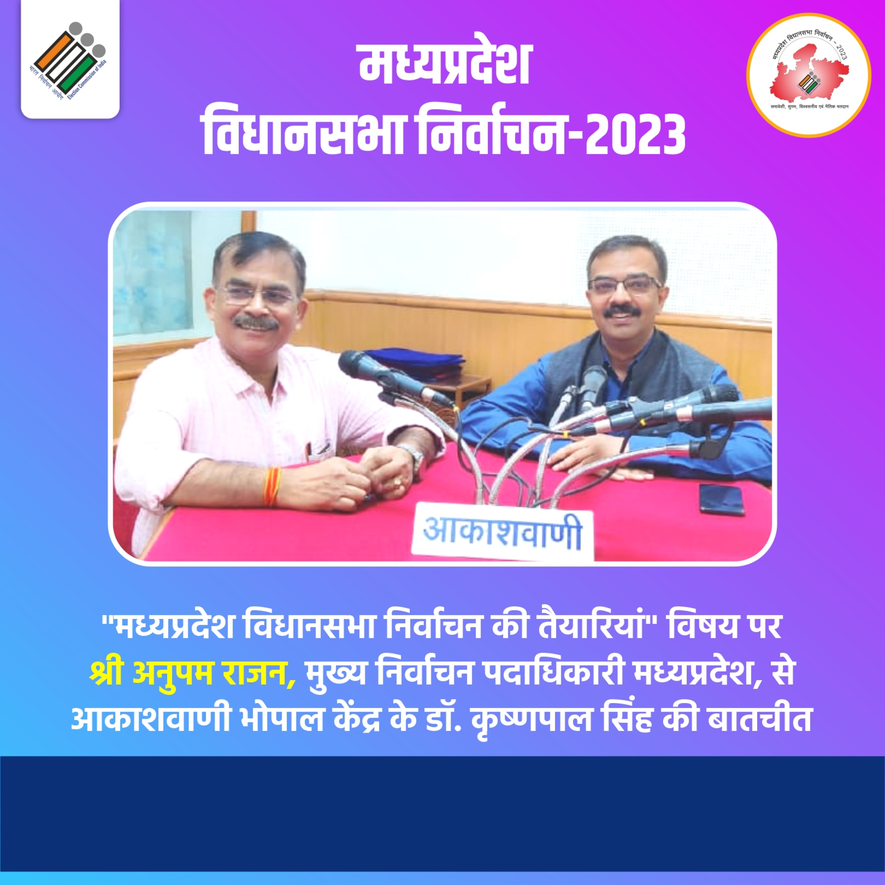 मध्यप्रदेश विधानसभा निर्वाचन की तैयारियों पर CEOMP श्री अनुपम राजन से आकाशवाणी भोपाल की बातचीत