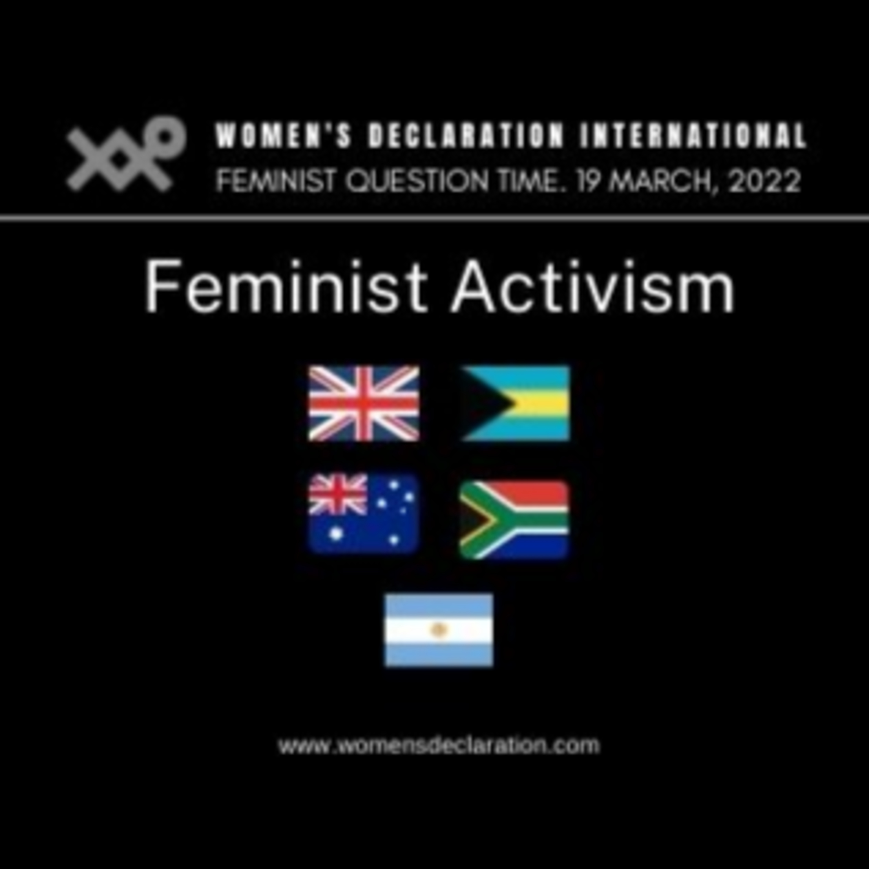 Women's Declaration International (WDI) Feminist Question Time is our weekly online webinars. It is attended by a global feminist and activist audience of between 200-300. The main focus is how gender ideology is harming the rights of women and girls. You can see recordings of previous panels on our YouTube Channel. WDI is the leading global organisation defending women’s sex-based rights against the threats posed by gender identity ideology. There is more information on the website womensdeclaration.com where you will find our Declaration on Women’s Sex-based rights, which has been signed by more 30,000 people from 157 countries and is supported by 418 organisations.