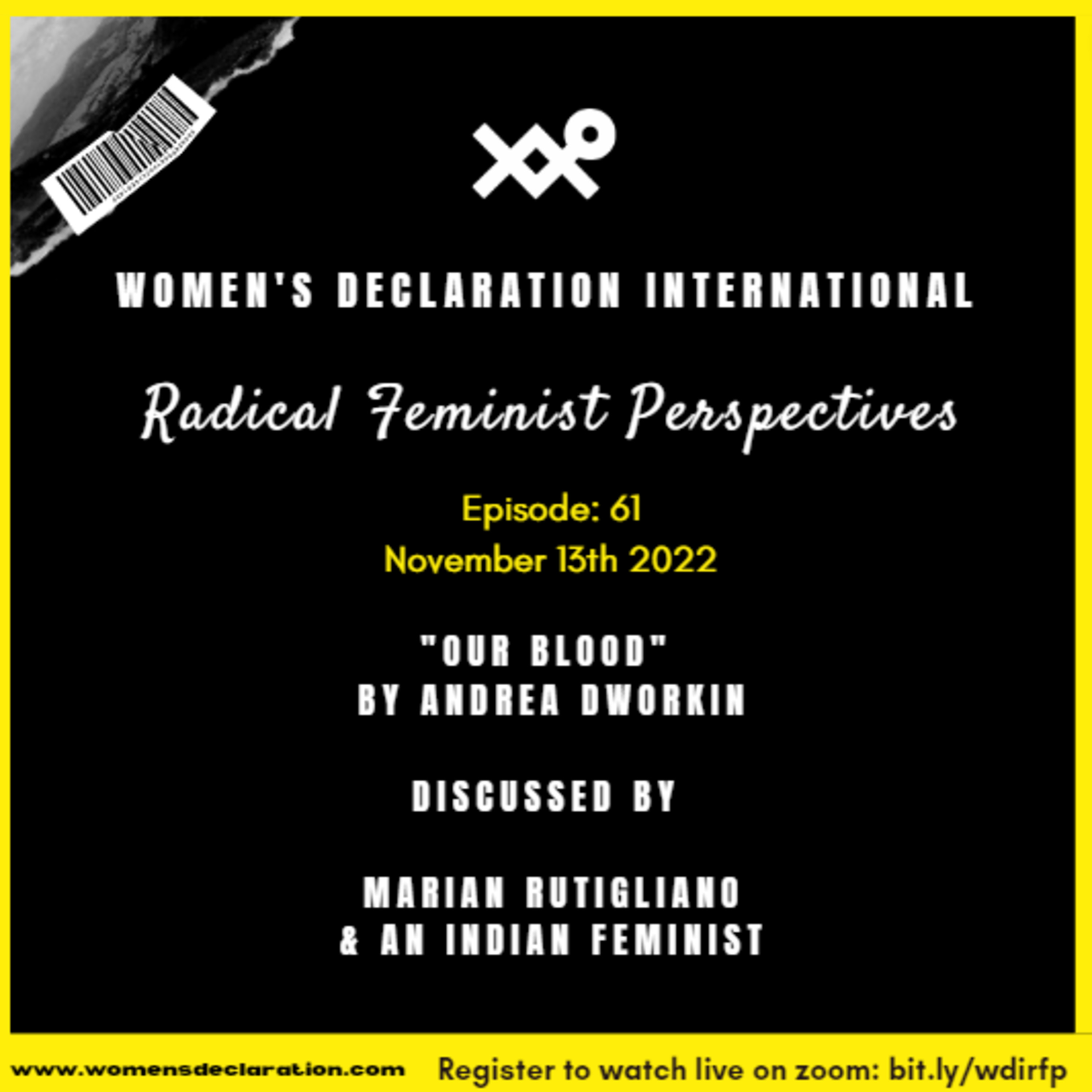 "Our Blood" (1976) by Andrea Dworkin discussed by an Indian feminist and Marian Rutigliano