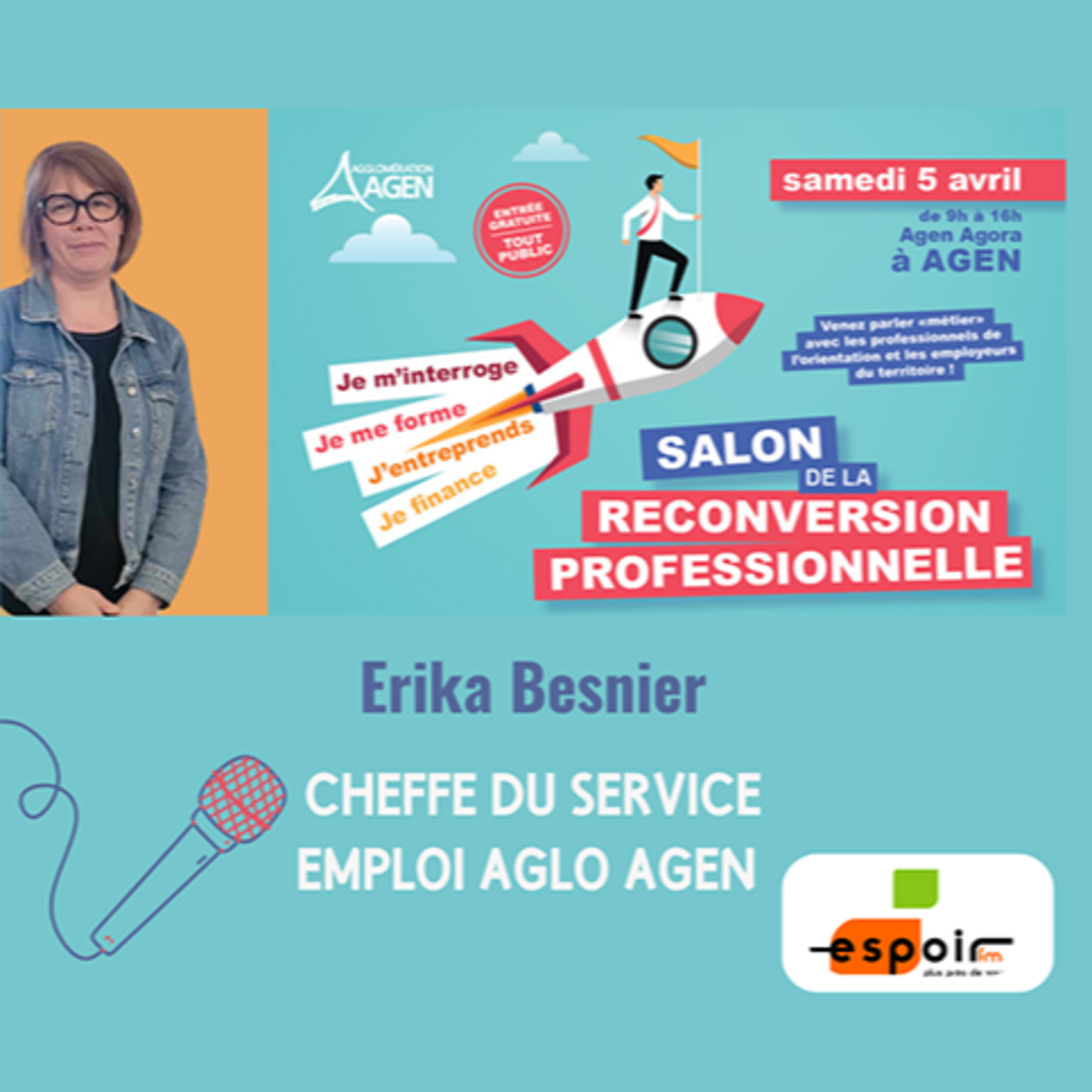 Erika BESNIER, est cheffe du service Emploi à l’Agglo d’Agen. Elle nous présente le salon de la reconversion professionnelle qui se tiendra ce samedi 5 avril à Agen Agora de 9h à 16h.