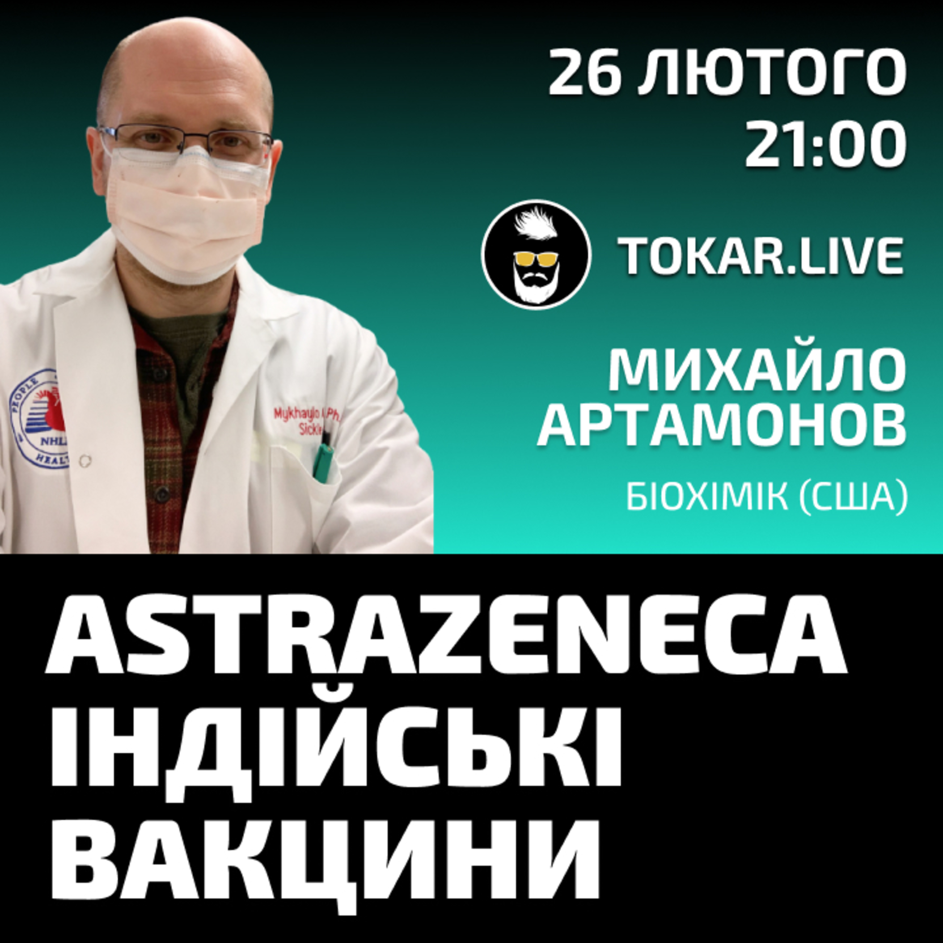 Біохімік Михайло Артамонов розказує про вакцину AstraZeneca та дієвість індійських вакцин. Короткий стрім у Tokar Live.
