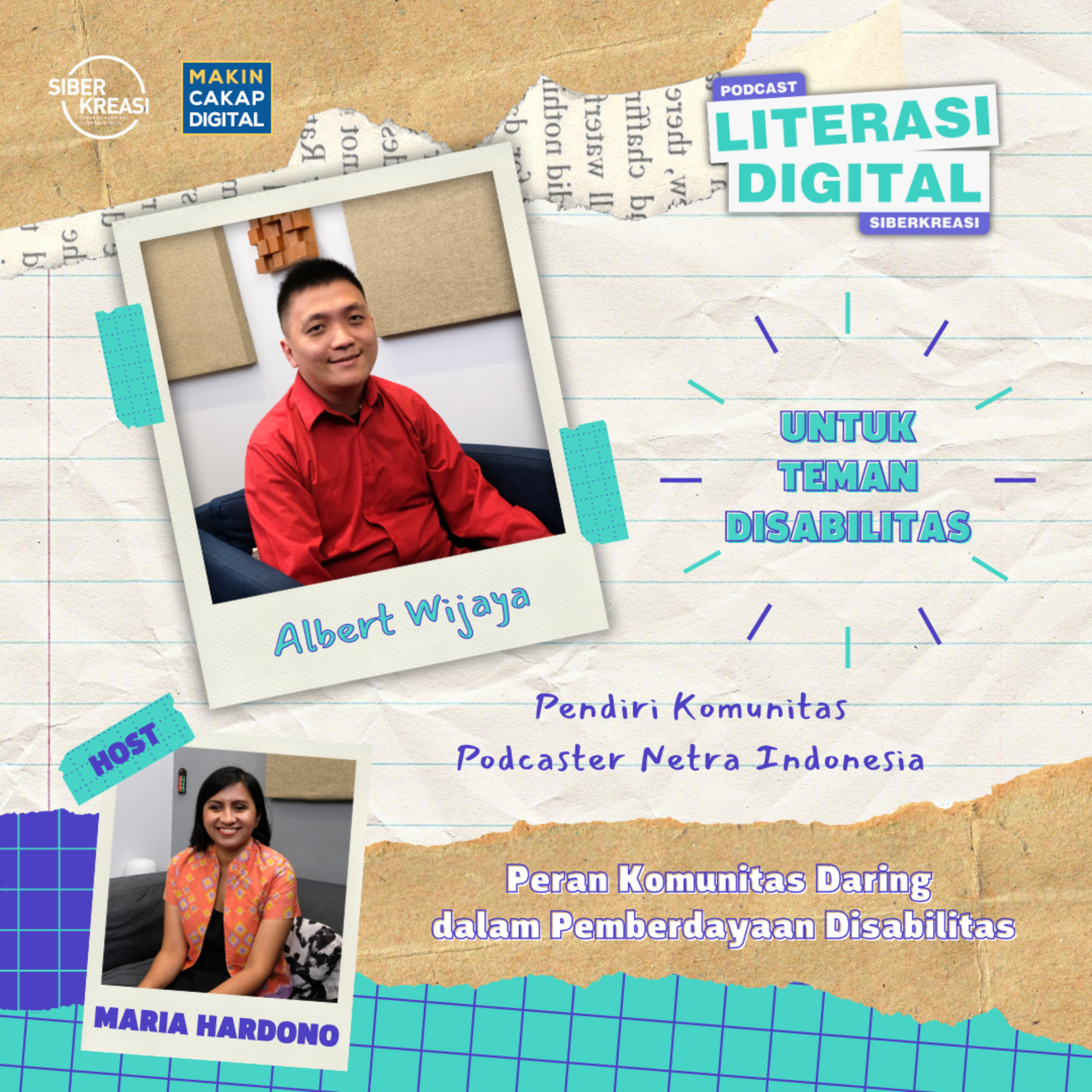 Di episode kali ini, Host Maria Hardono (@maria_specialkids) bakal ngobrol bareng Albert Wijaya (@albert2594) seorang Pengajar Disabilitas sekaligus Pendiri Komunitas Podcaster Netra Indonesia.