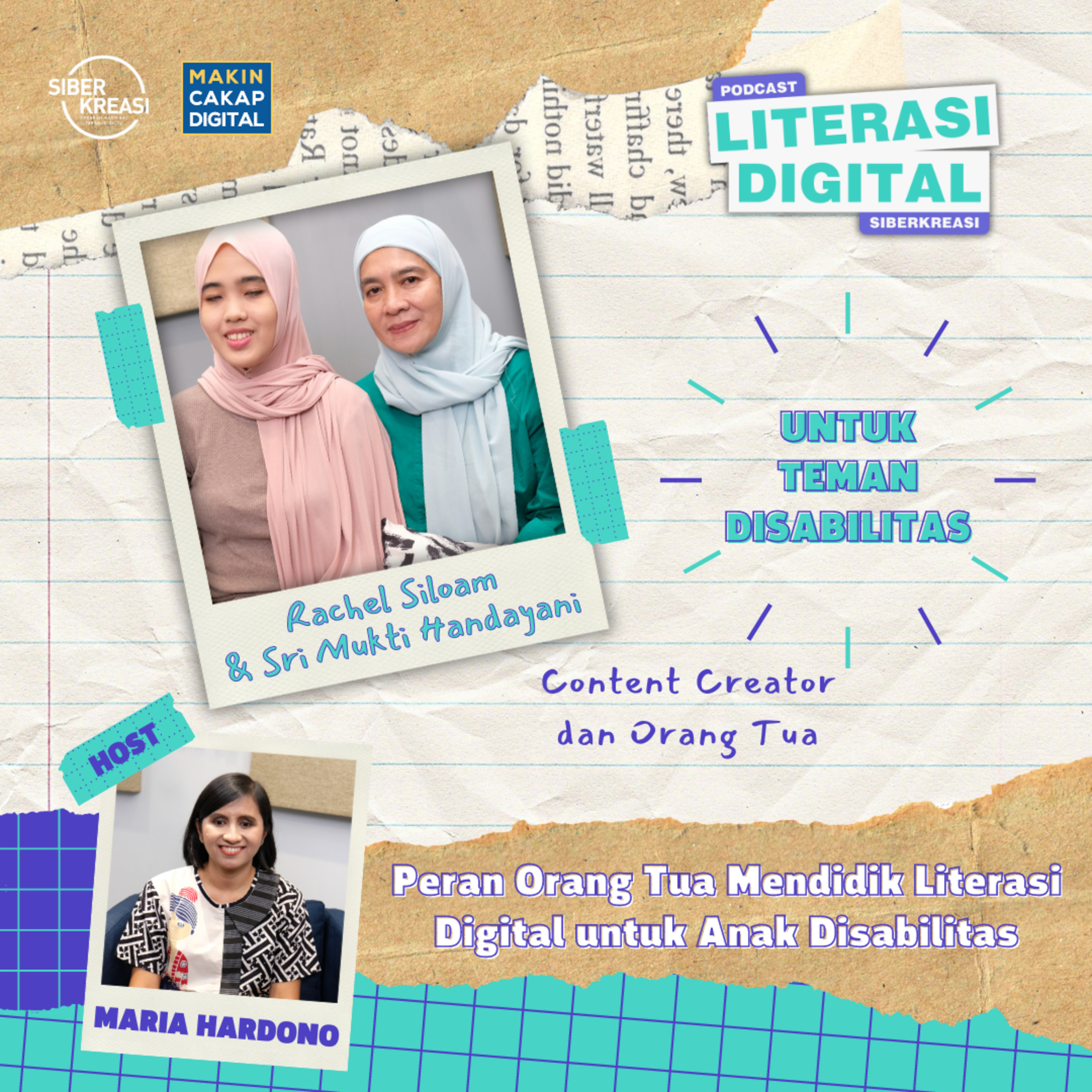 Simak obrolan seputar "Peran Orang Tua di dalam Perkembangan Content Creator Digital" di Podcast Literasi Digital Siberkreasi edisi Untuk Teman Disabilitas.