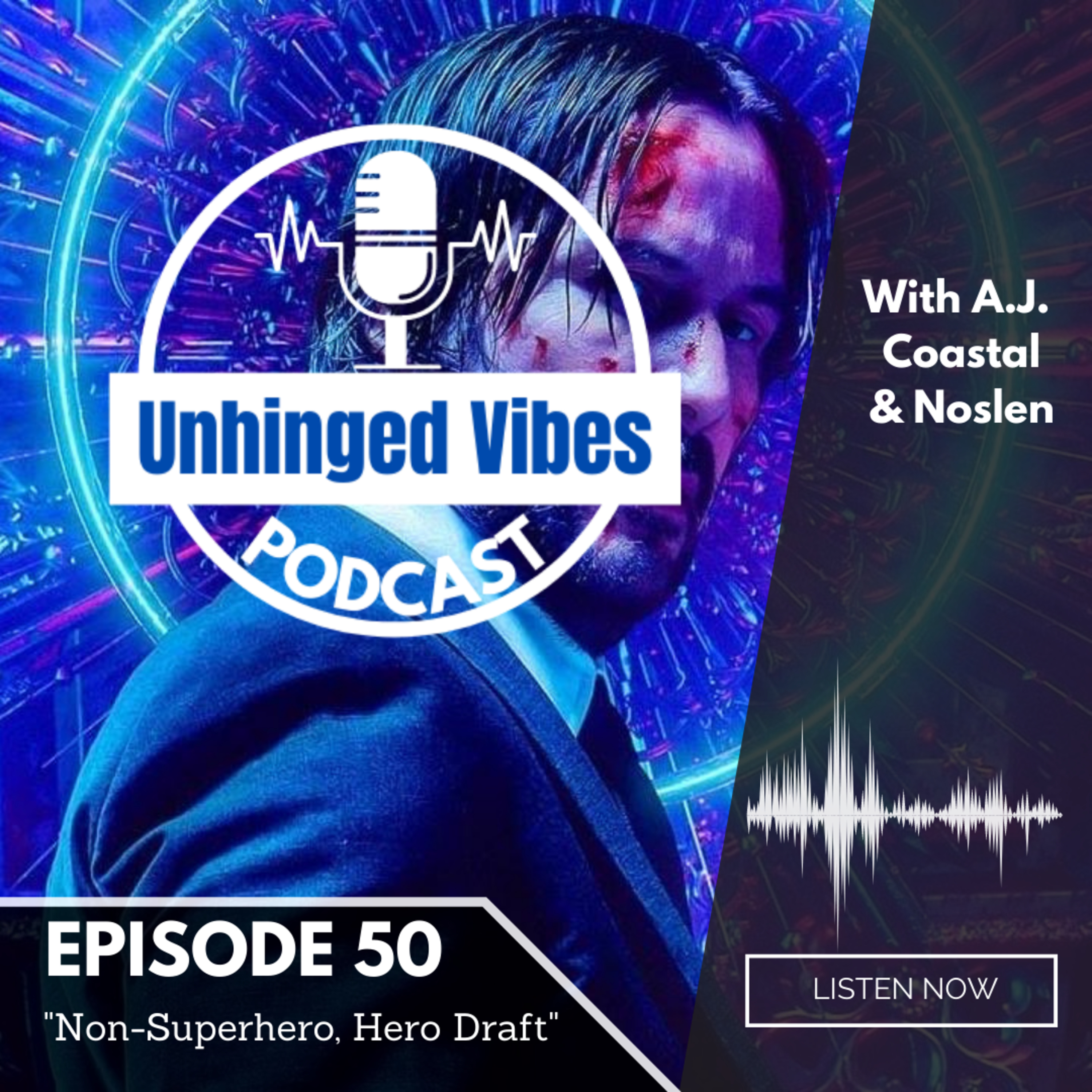 Welcome to the Unhinged Vibes Podcast with your host A.J., Coastal, and Nelson. In this special 50th episode, we finally draft our hero teams. Rules are that we must draft heroes from a non-superhero movie and tv show, and draft teams of 10. As always, we have a great time and share some laughs, and hope you share some laughs with us!