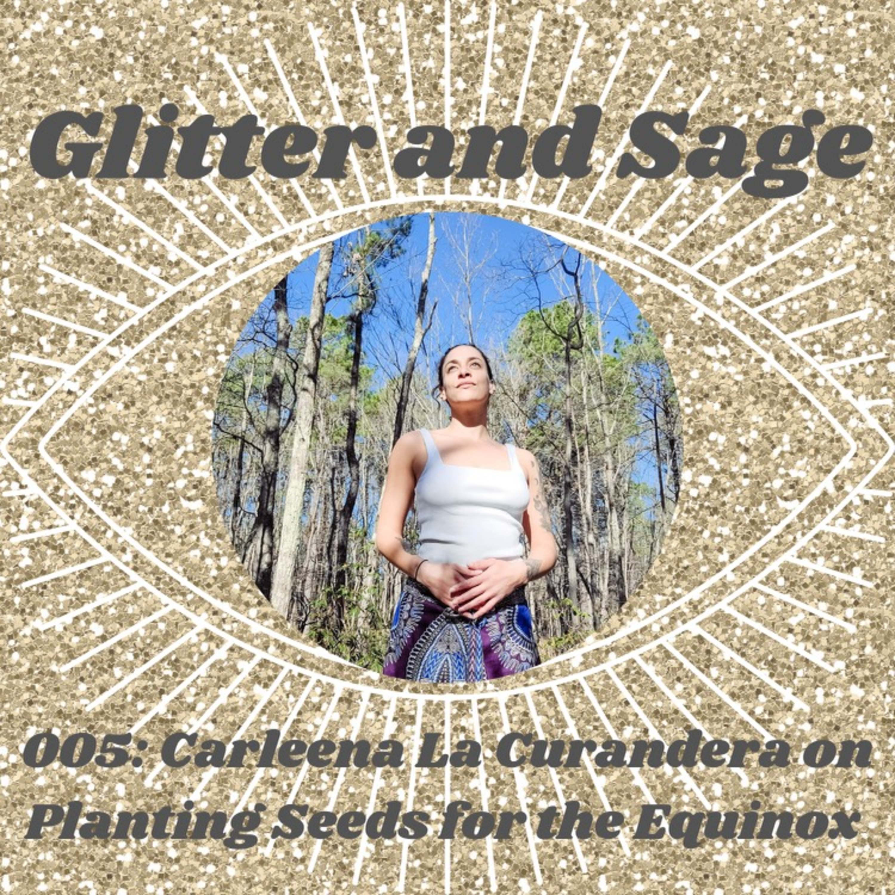 Welcome to Episode 005 of the Glitter and Sage podcast! This is the Spring Equinox episode, featuring a conversation with Carleena Lara-Bregatta, also known as Carleena la Curandera. We recorded this episode on the Spring Equinox right after I attended Carleena’s incredible workshop honoring the Equinox, Inner Alchemy. Her workshop was such a special way to welcome Spring, with approachable movement/yoga, meditation, journaling, and distance Reiki. The class was recorded and is still available! I had a magical experience and highly recommend checking it out at Carleena’s website below. Recording this conversation right after the class was so lovely, and I was so honored to connect with Carleena heart to heart and discuss all of the magic of the Equinox and her offerings!