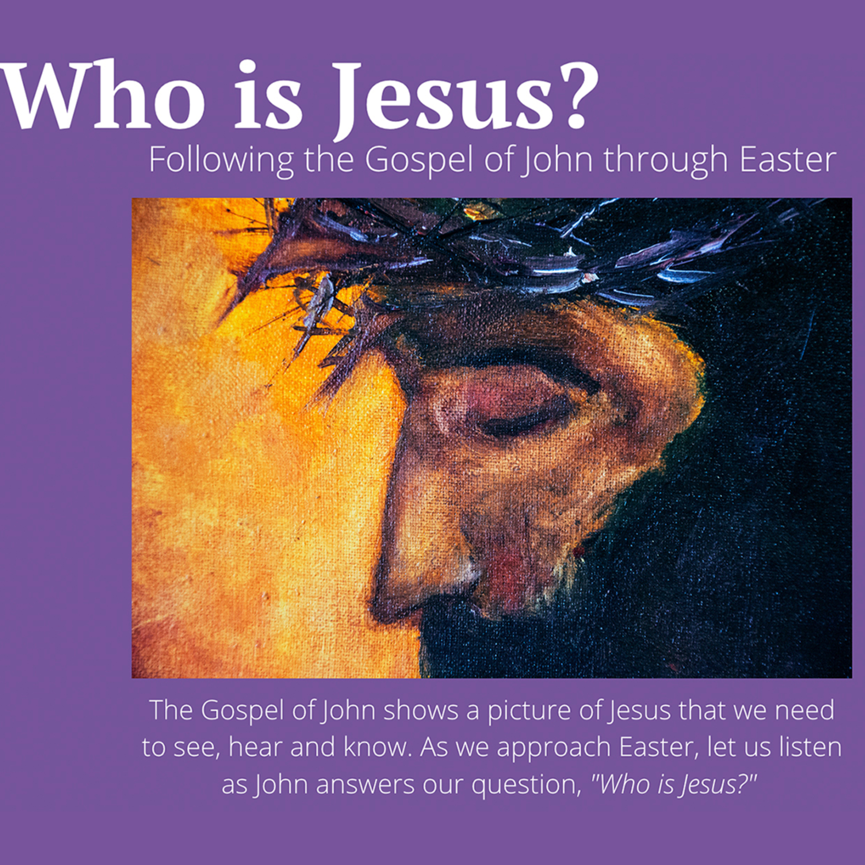 The Gospel of John shows a picture of Jesus that we need to see, hear and know. As we approach Easter, let us listen as John answers our question, "Who is Jesus?"