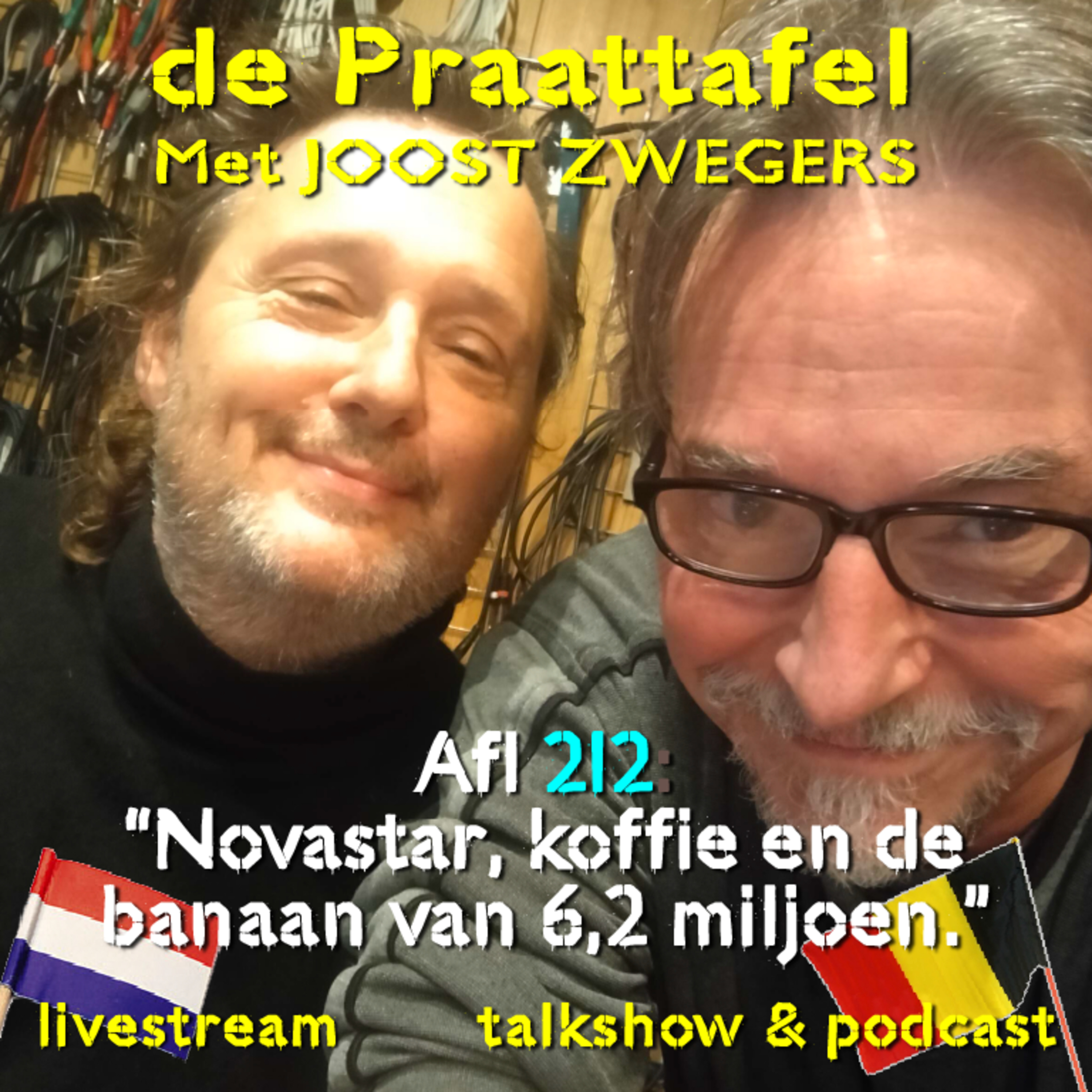 Niemand minder dan de grote Joost “Novastar” Zwegers is te gast aan de 212de Praattafel. Dus veel over muziek, maar ook over een 6,2 miljoen kostende banaan, A.I. (want daar krijgen we nooit genoeg van) en de voordelen van koffie. Met natuurlijk de Triviakwis die deze week over paswoorden gaat. Zeker een reden om ook deze Praattafel te verslinden tijdens het drinken van liters koffie.