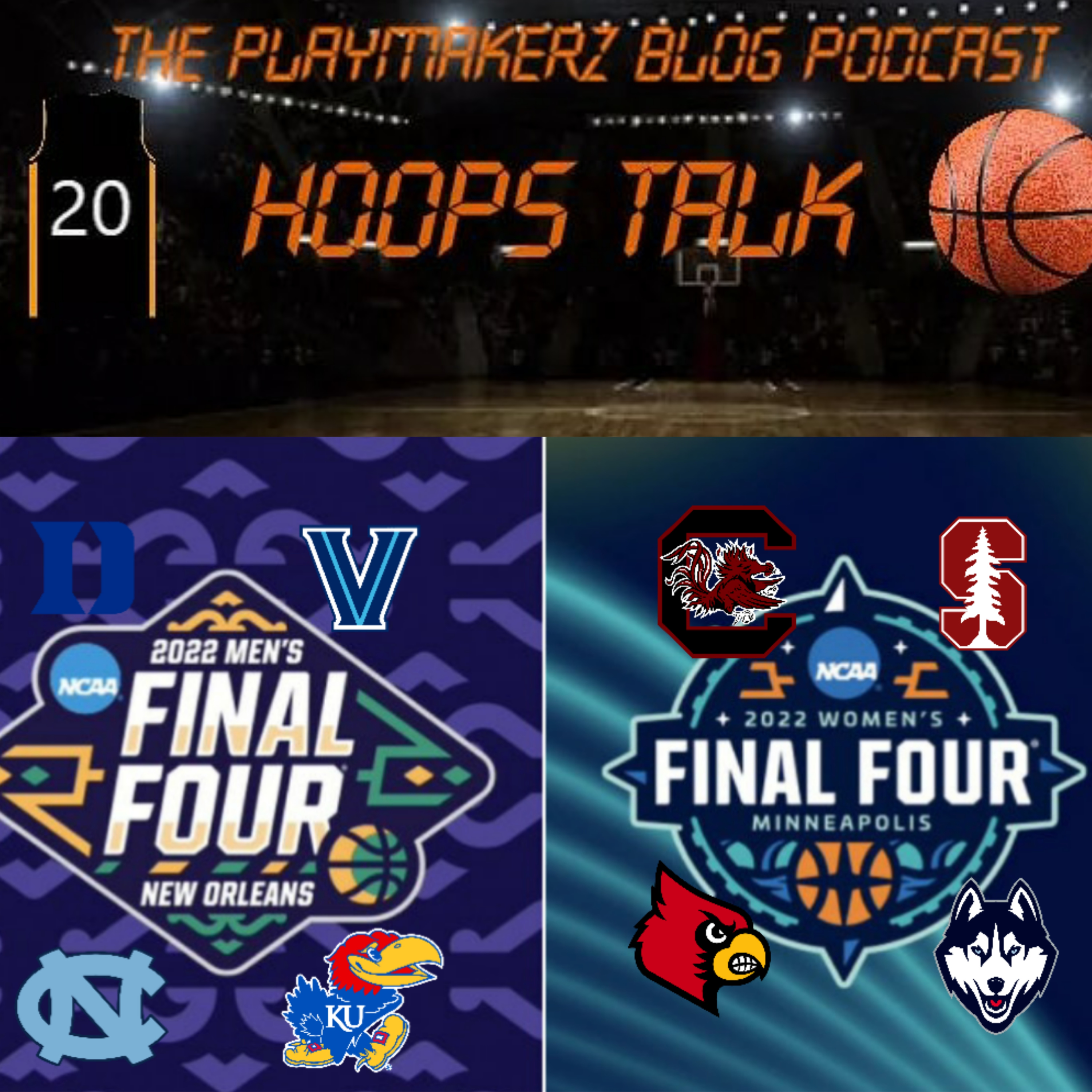 We are down to the Final Four in both the men and women's NCAA Tournament. Minneapolis will be seeing red while a monster in blue is lurking in Twin Cities. South Carolina, Stanford, Louisville, and UConn for the crown as best. For the men, New Orleans is Blue Blood city. Coach K's final dance reaches NOLA with Duke, but Carolina Blue feeling the jazz as well under Hubert Davis. Rock Chalk Jayhawks flying over the Superdome and Jay Wright's Wildcats of Nova pouncing for some birds in Saints country. The Queen of Hoops, Megan Price joins The Playmaker recapping the Madness to the Final Four.