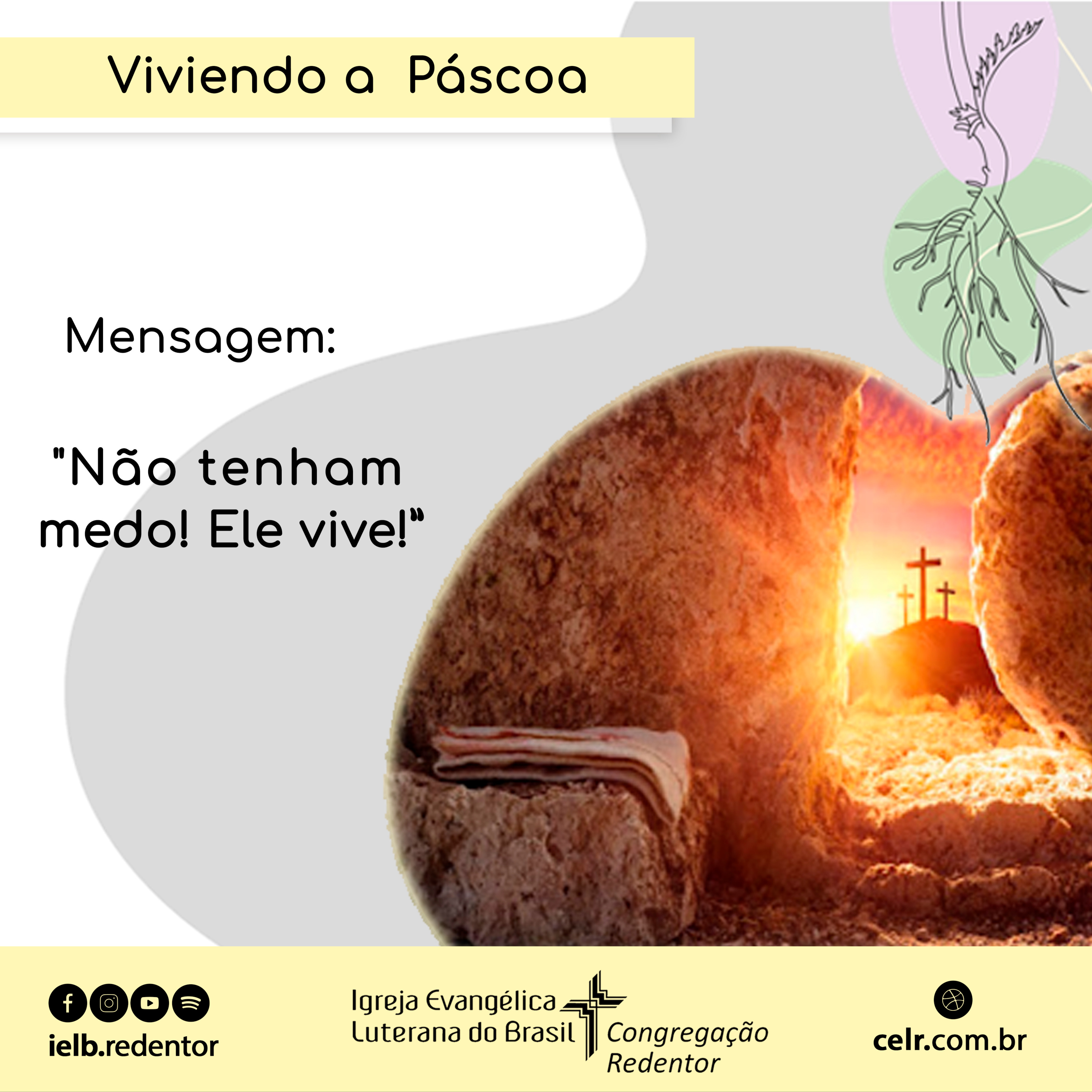 VIVENDO A PÁSCOA – “Não tenham medo! Ele vive!”, mensagem proferida pelo Pr. Mário Fukue no CULTO DA CEL REDENTOR, Domingo de Páscoa | A ressurreição do Senhor, 09 de abril de 2023, 9h30.