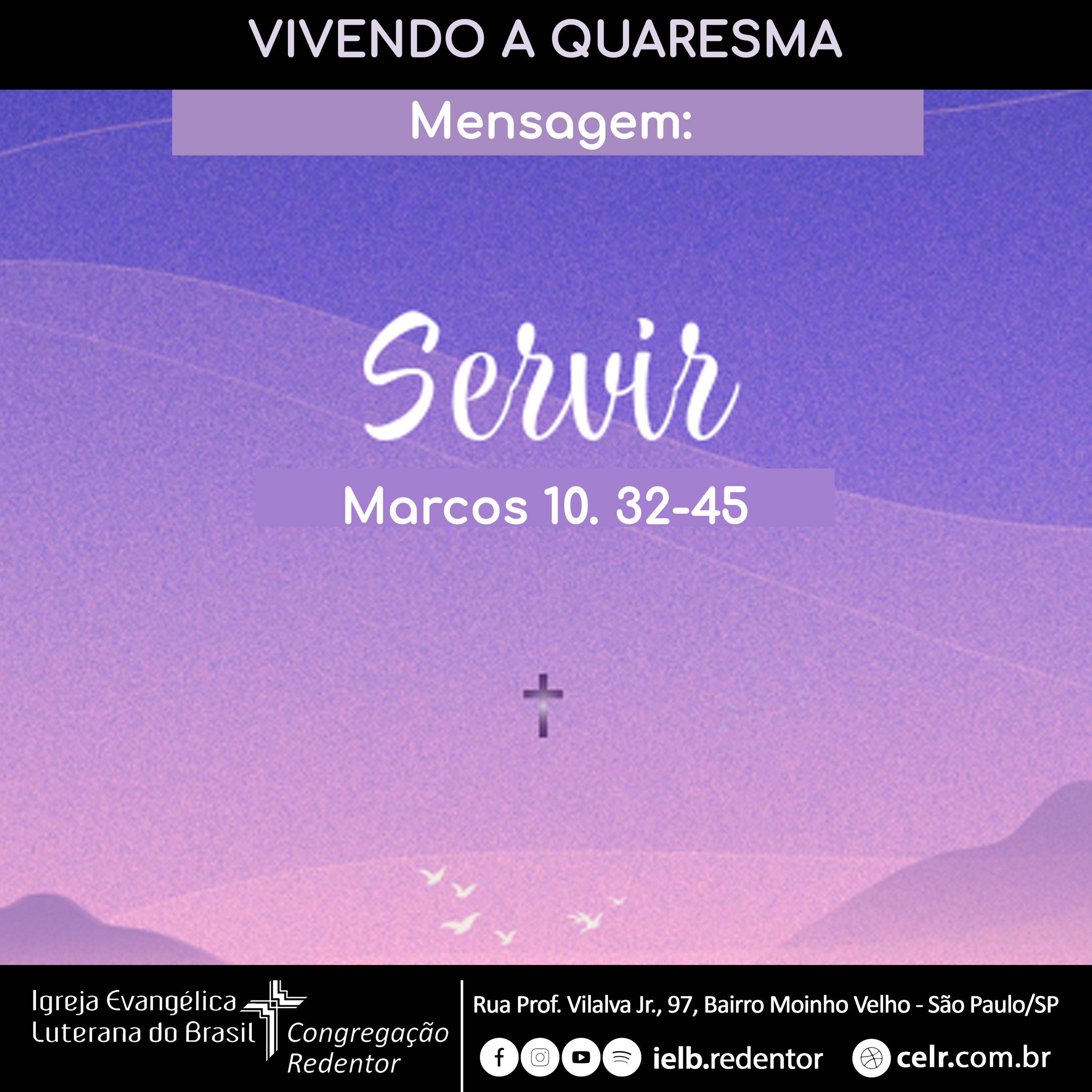 VIVENDO A QUARESMA – “Servir” (Marcos 10.32-45), mensagem proferida pelo Pr. Jean no CULTO DA CEL REDENTOR, 5º Domingo na Quaresma, 17 de março de 2024, 9h30.