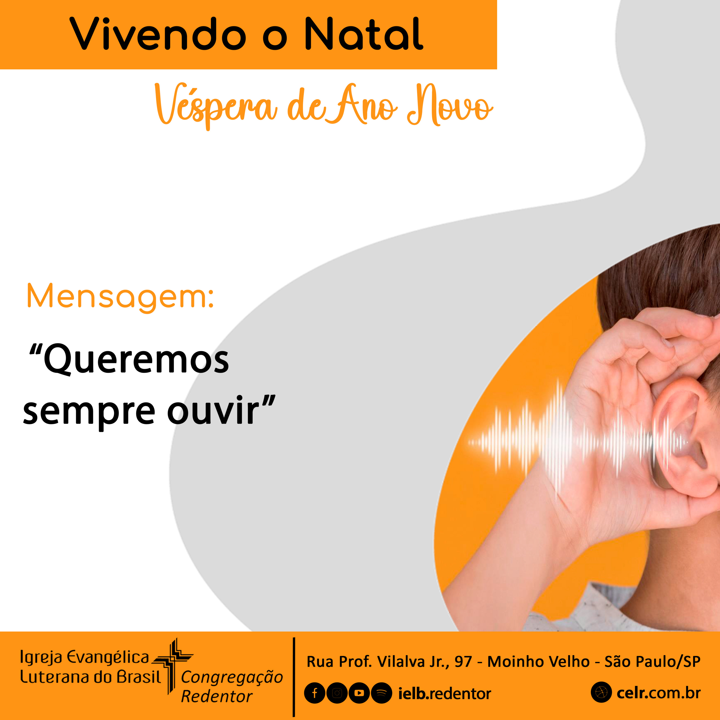 VIVENDO O NATAL – “Queremos sempre ouvir”, mensagem proferida pelo Pr. Iderval Strelhow no CULTO DA CEL REDENTOR, 1º Domingo após o Natal | Véspera de Ano Novo, 31 de dezembro de 2023, 9h30.