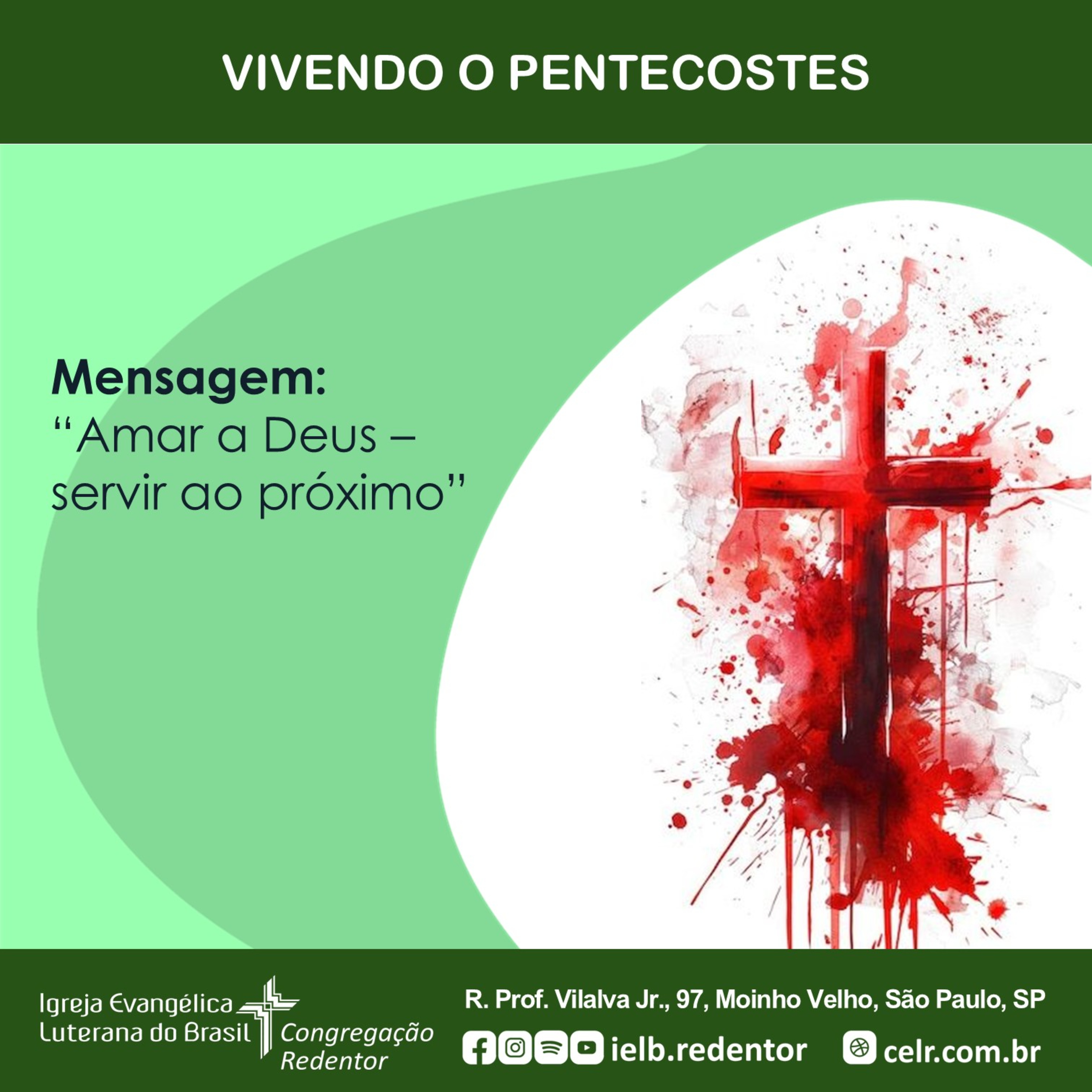 VIVENDO O PENTECOSTES – “Amar a Deus – servir ao próximo”, mensagem proferida pelo Pr. Enio no CULTO DA CEL REDENTOR, 18º Domingo após Pentecostes, 22 de setembro de 2024, 9h30.