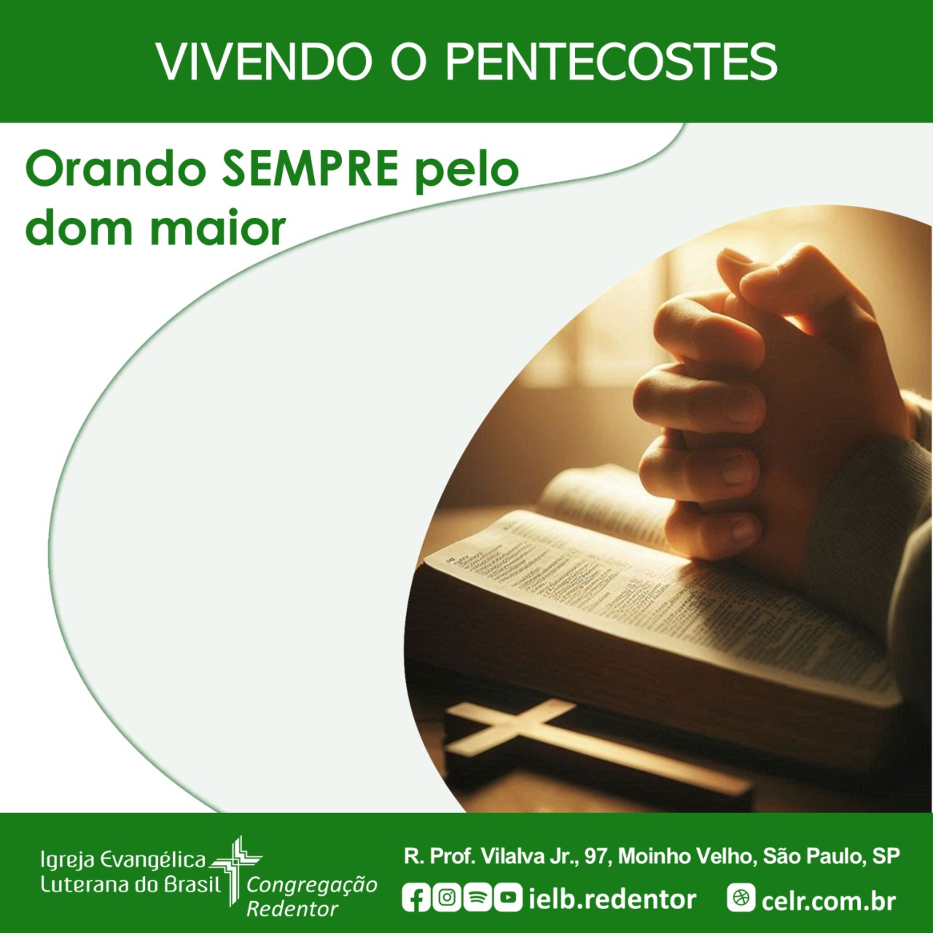 VIVENDO O PENTECOSTES – “Orando SEMPRE pelo dom maior”, mensagem proferida pelo Pr. Iderval no CULTO DA CEL REDENTOR, 7º Domingo após Pentecostes, 27 de julho de 2025, 9h30.