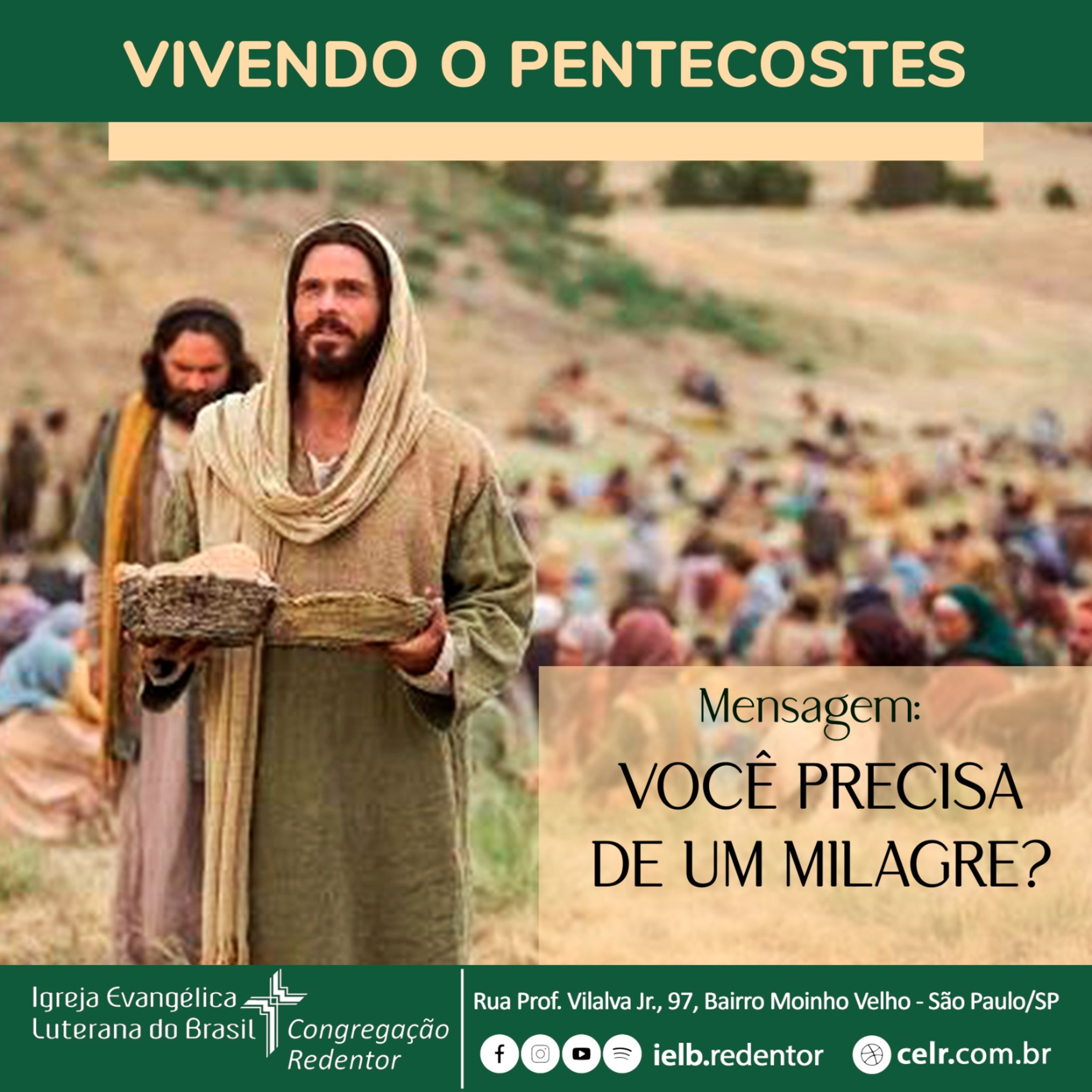 VIVENDO O PENTECOSTES – “Você precisa de um milagre?”, mensagem proferida pelo Pr. Ilvo no CULTO DA CEL REDENTOR, 9º Domingo após Pentecostes, 21 de julho de 2024, 9h30.