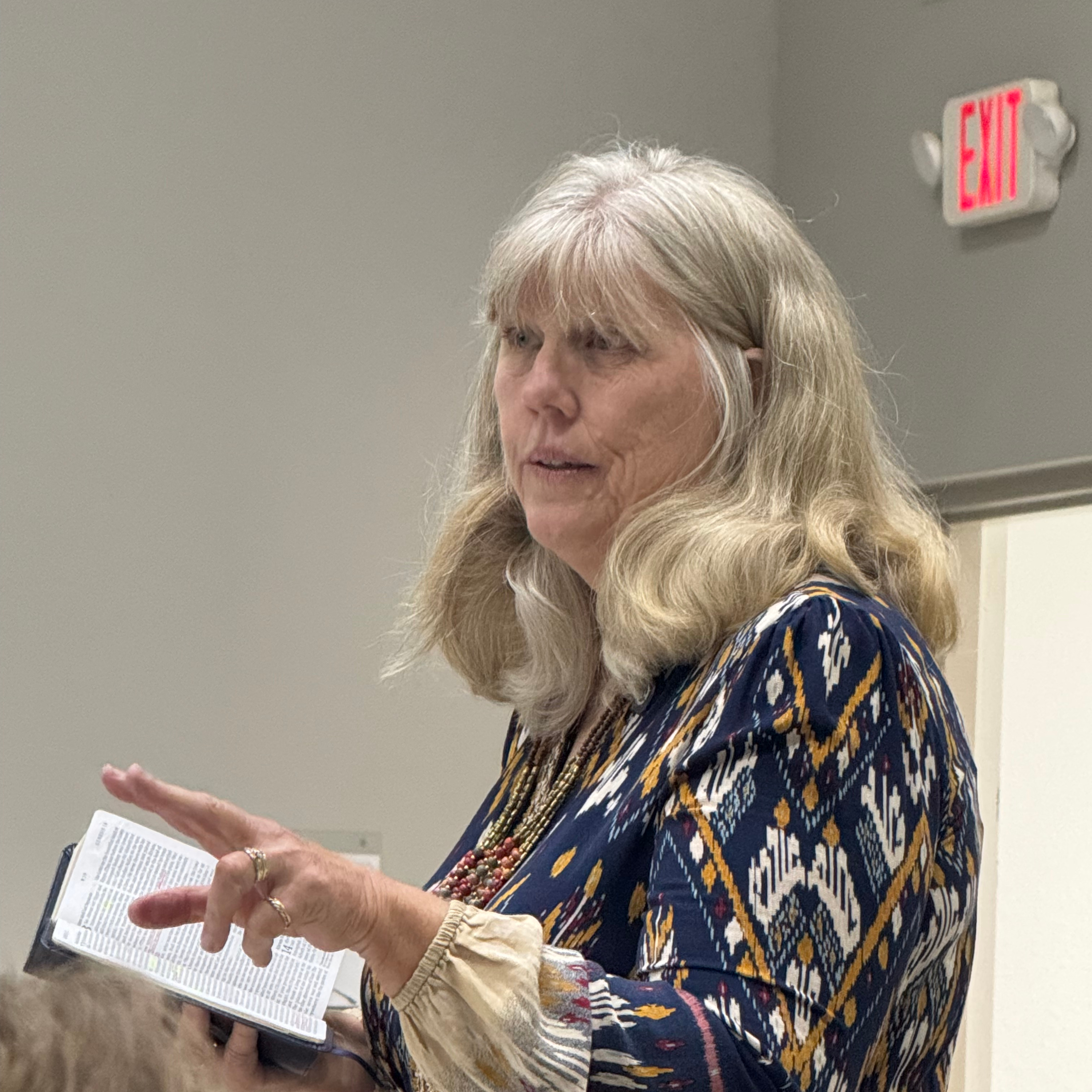 The weekly adult Sunday School class at OAG taught by long-time teacher, Mrs. Jeanie Davis.