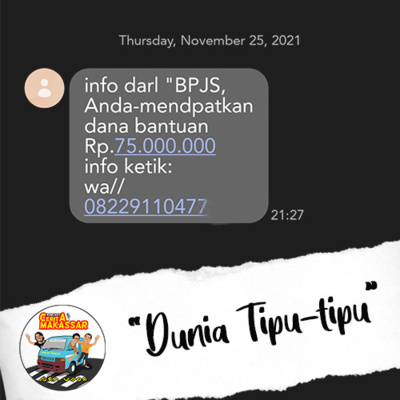 Teknologi berkembang, tren penipuan juga berkembang. Kalau dulu penipuan secara tatap muka yang biasa disebut "Pakappala tallang", lalu bertranformasi jadi penipuan lewat telepon rumah, sampai sekarang lewat handphone, WA, atau email.